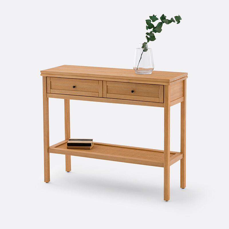 Консоль с двойной столешницей из массива сосны и плетения Gabin единый размер бежевый