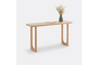 "Создавая консоль Douve, я хотел изобразить традиционный аббатский стол в новой интерпретации. Она отличается современным стилем и скульптурным дизайном. Массив дуба с сертификатом FSC®, толстая столешница с закругленными краями и ножки в виде перевернутой арки: Вся красота деревообработки."