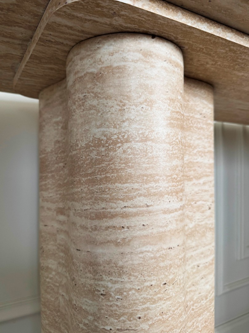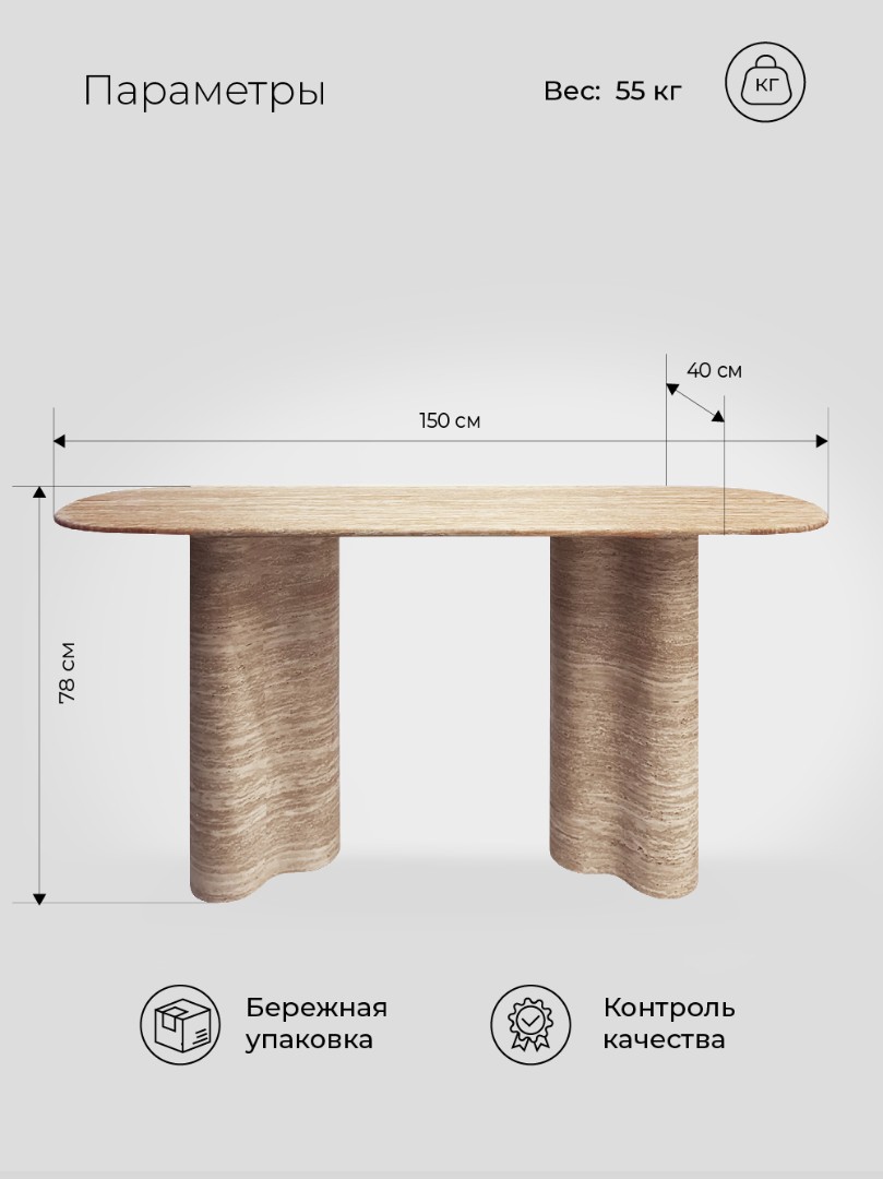 Покрытие: Столешница -искусственный травертин, опоры-ламинированный МДФ под текстуру травертина