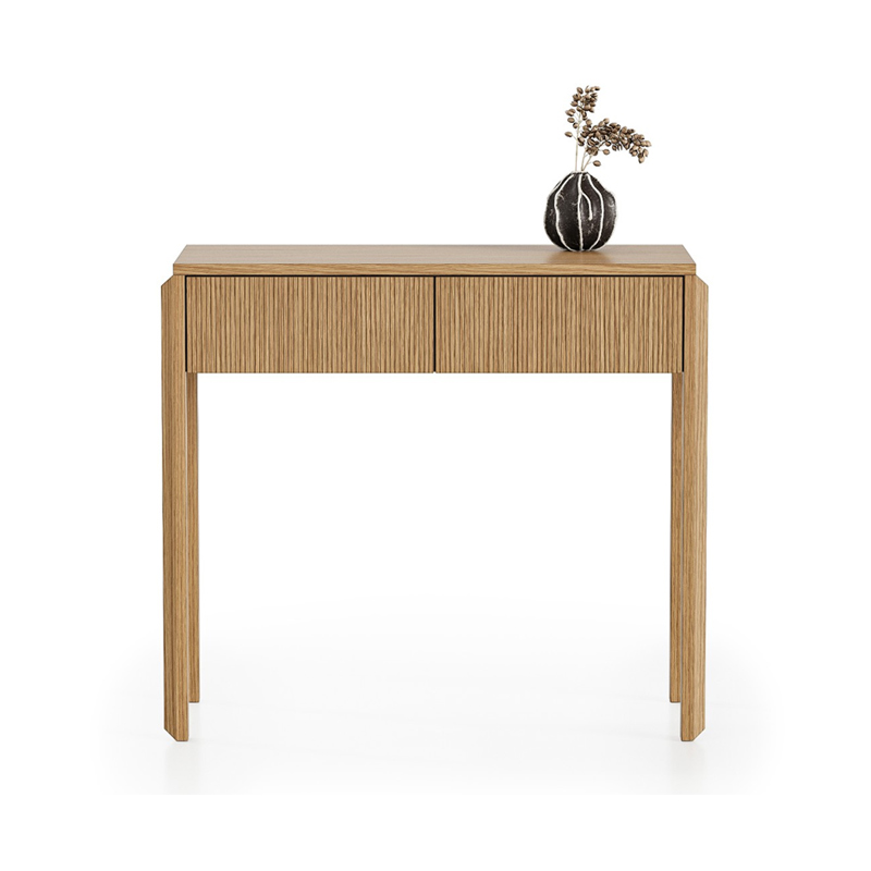 Вертикальная фрезеровка на фасадах и боковинах добавляет консоли визуального объема и делает ее украшением любого интерьера.