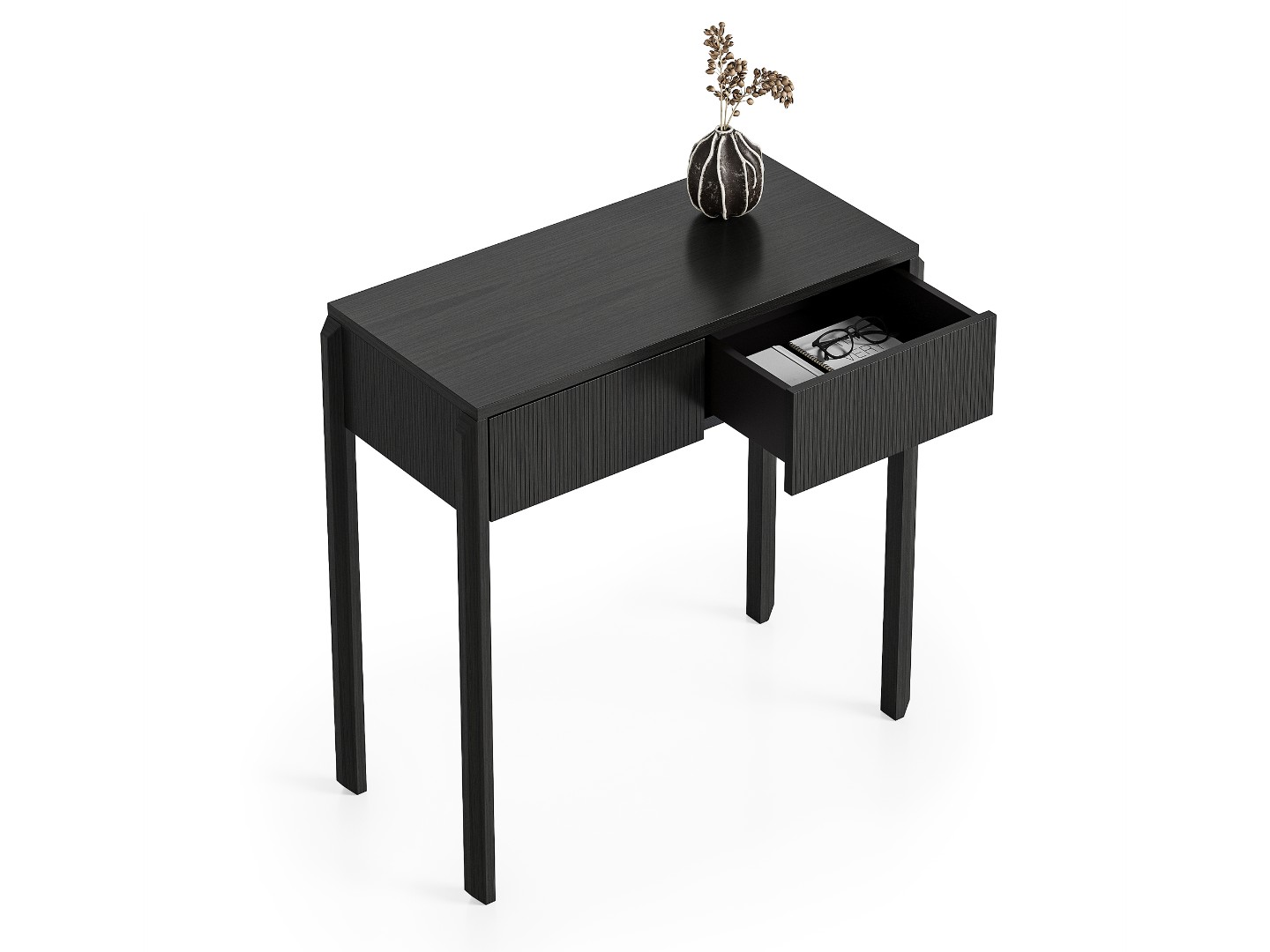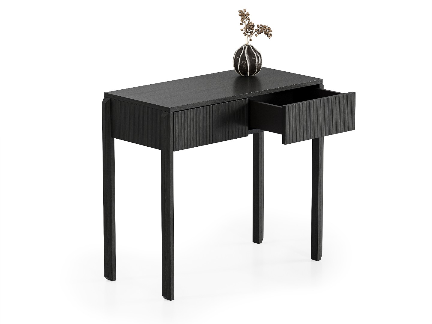 Вертикальная фрезеровка на фасадах и боковинах добавляет консоли визуального объема и делает ее украшением любого интерьера.