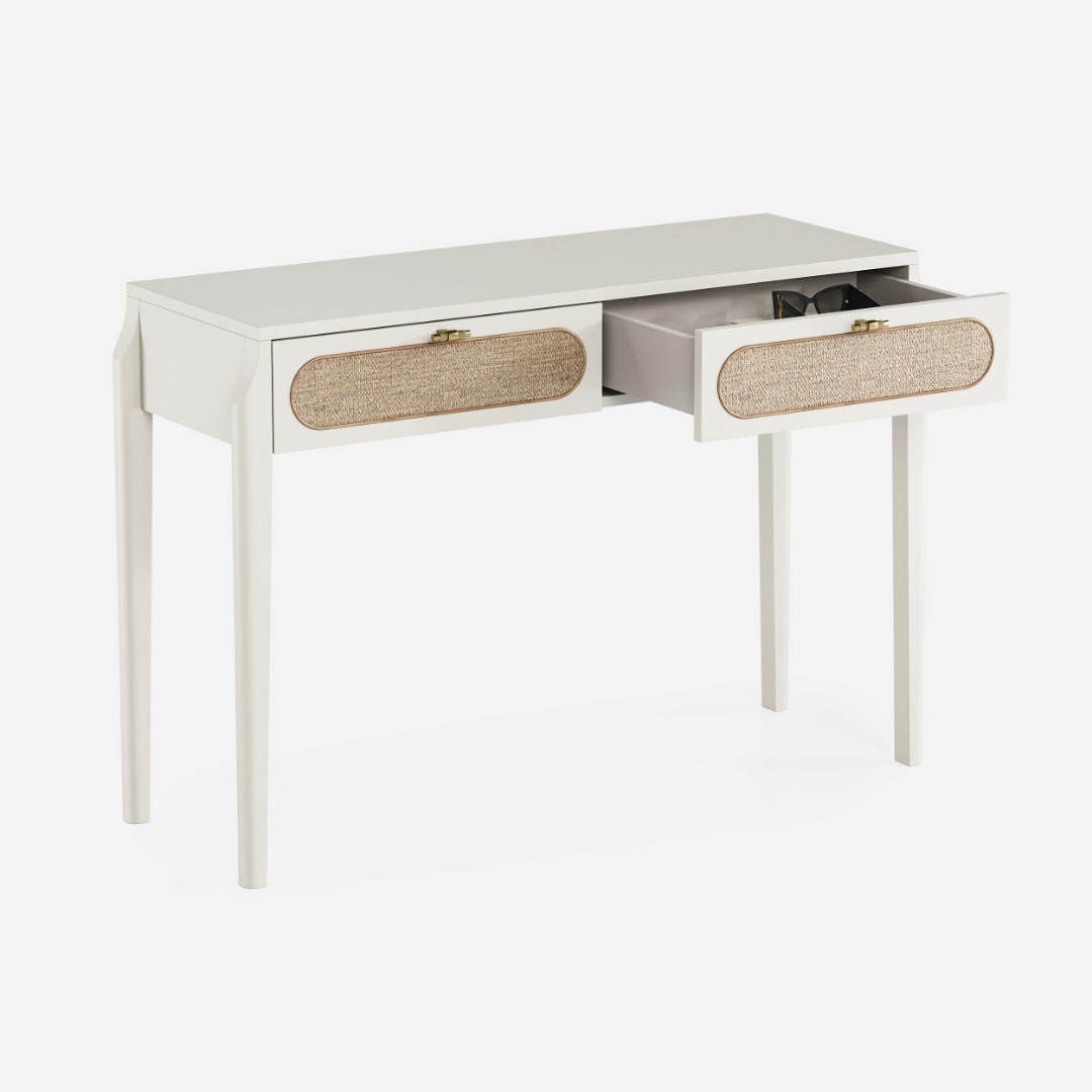 В основе дизайна коллекции Vishera – оригинальный фасадный декор, выполненный из натурального ротангового полотна. Естественная плетеная фактура ротанга придает мебели легкое очарование, свойственное традиционным ремесленным техникам, а природные текстуры и натуральные оттенки отделки создают неповторимую гармонию, теплоту и уют.