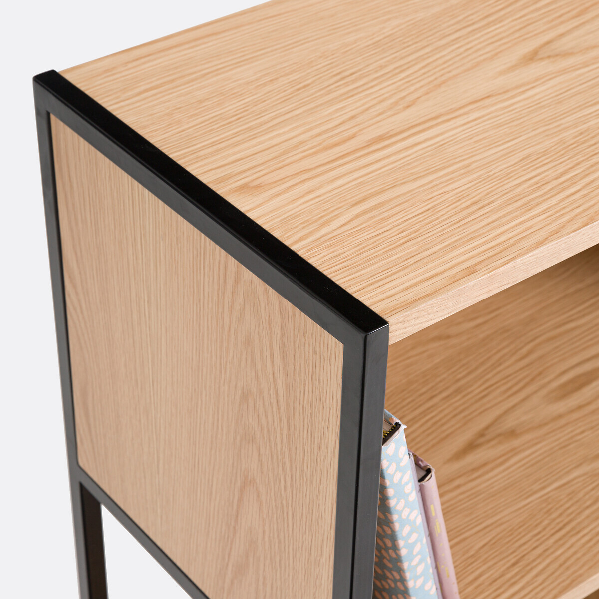 • 2 открытые ниши из МДФ со шпоном дуба и нитроцеллюлозным покрытием