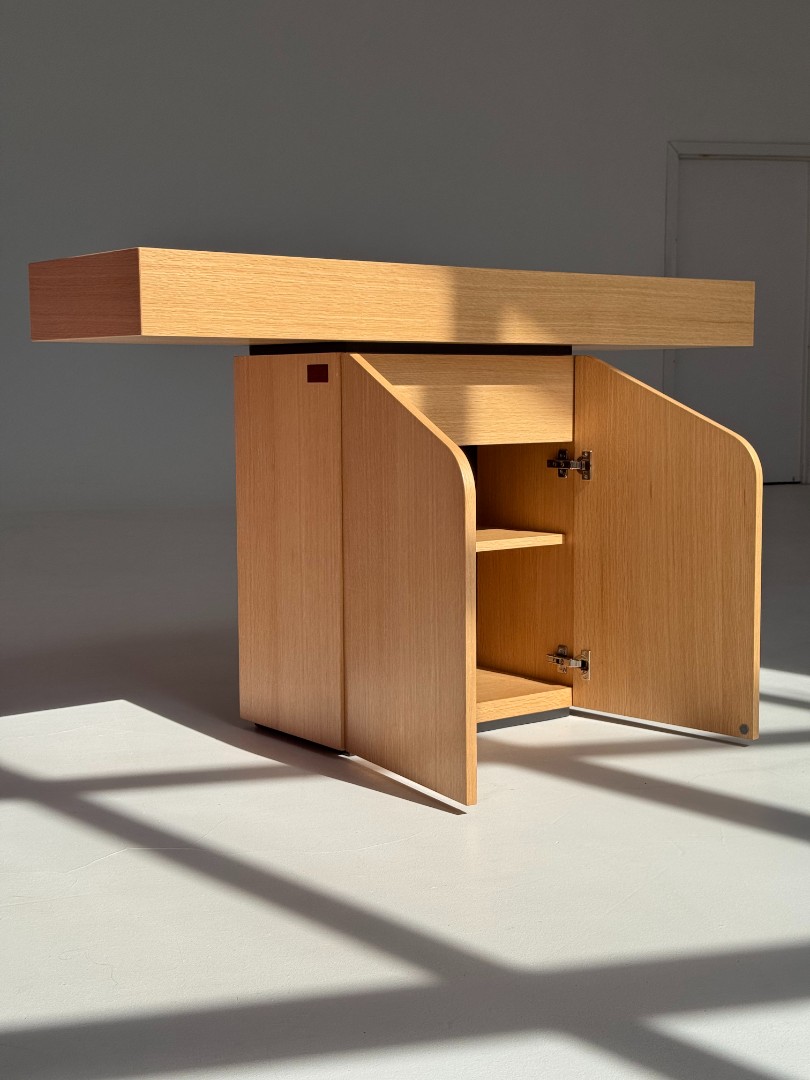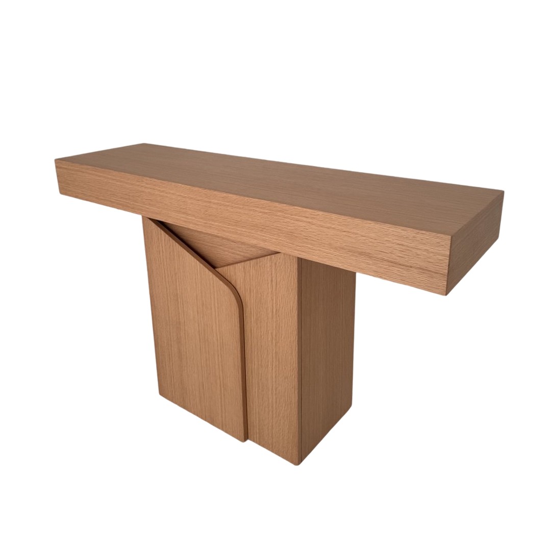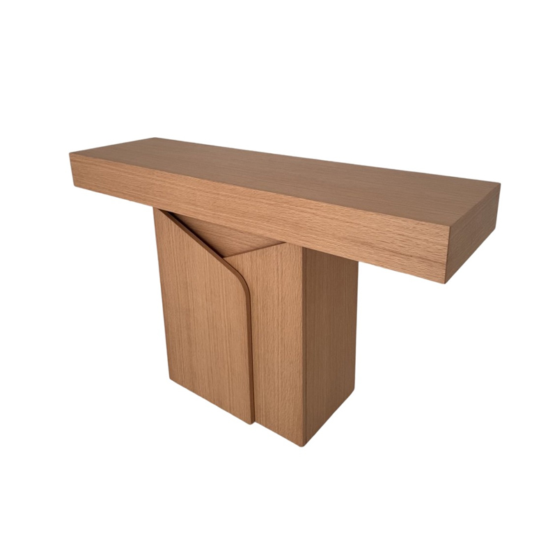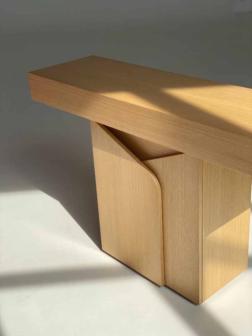 Запросить индивидуальное предложениеКонсольный стол в стиле японского минимализма. Yukata — это традиционная японская одежда, схожая с кимоно, вдохновившая автора на создание этого консольного стола. В этом предмете фасады напоминают форму запа́ха юкаты, а общий облик перекликается с японской эстетикой простоты и сдержанности, передавая ощущение внутреннего покоя Консольный стол выполнен в духе японского минимализма: чистые линии, натуральные материалы и лаконичные формы, а внутри предусмотрено скрытое пространство для хранения, что делает Yukata не только эстетичным, но и функциональным предметом интерьера Тонировка шпона — +15% к стоимости.
