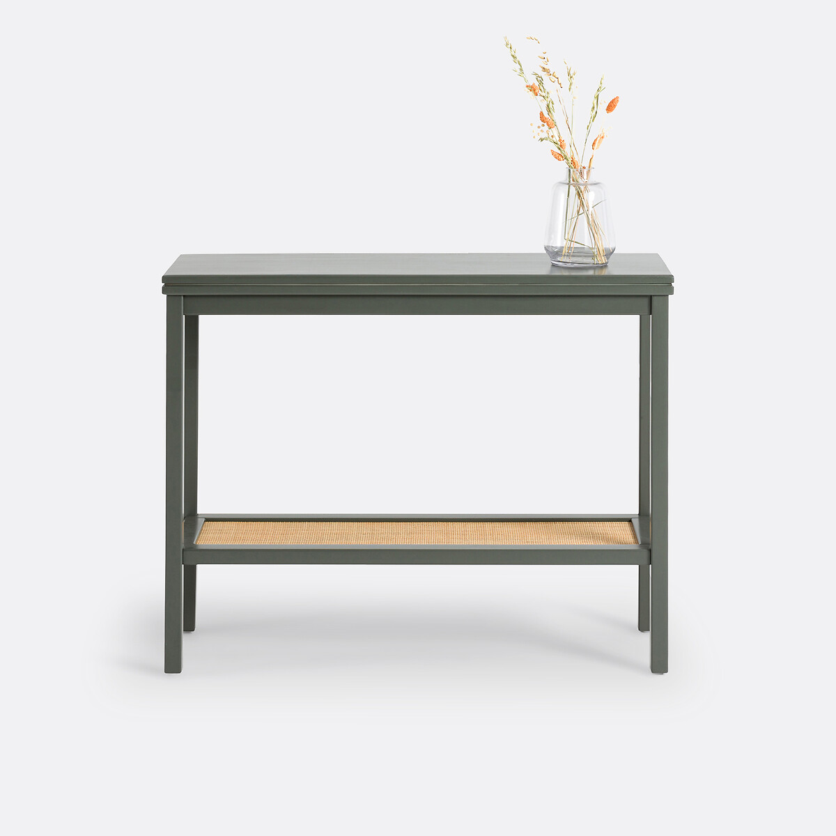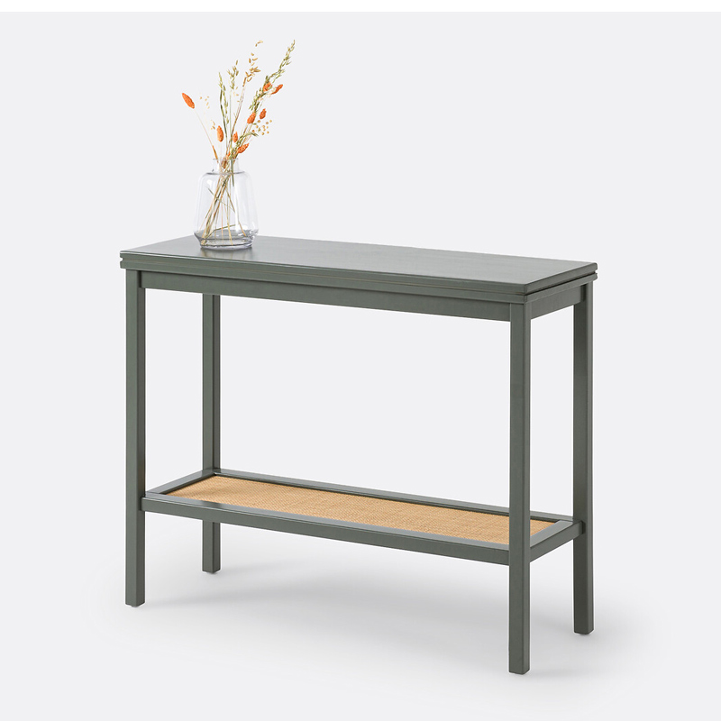 Консоль с двойной столешницей из массива сосны и плетения Gabin единый размер зеленый