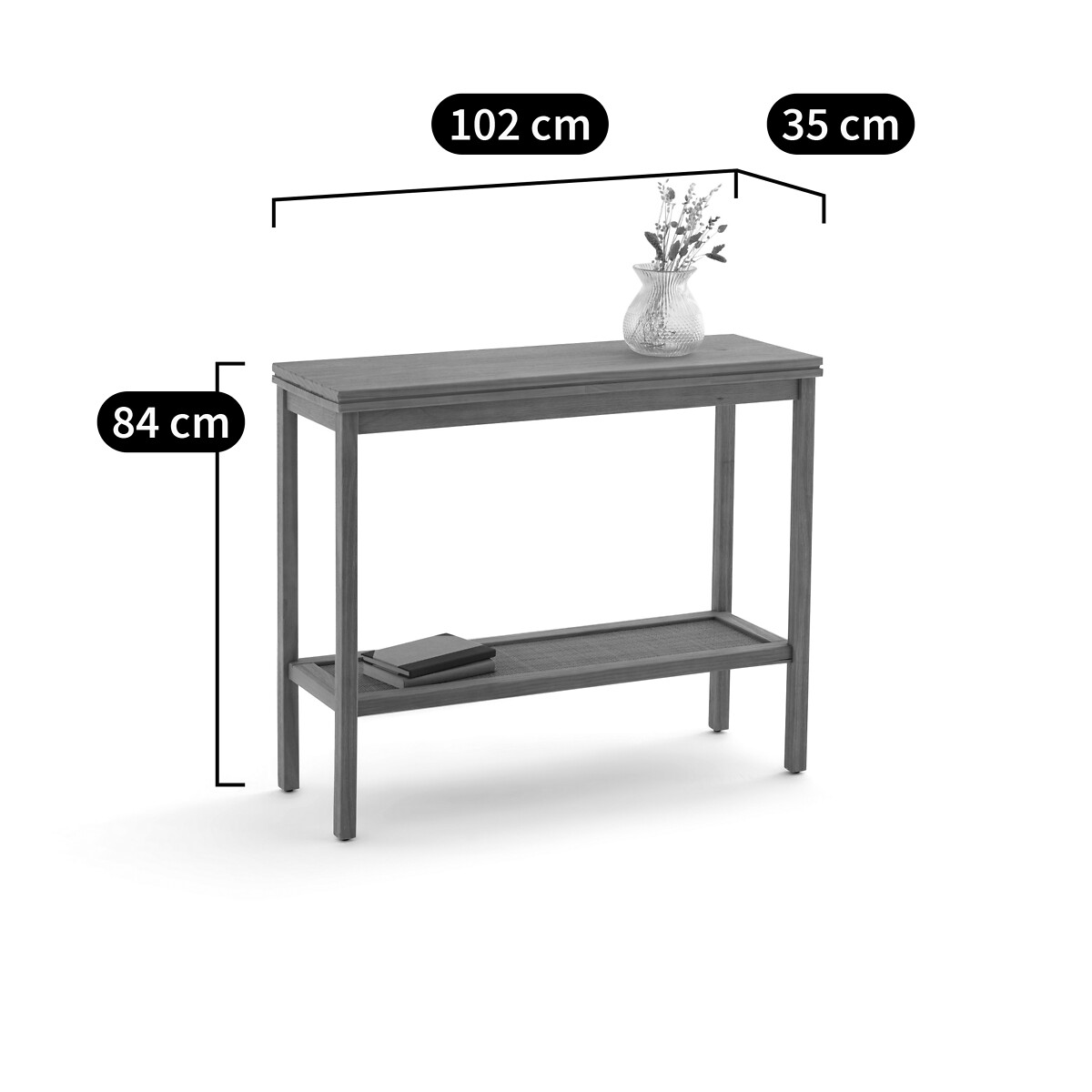 • Две полки: Верхняя полка из массива дерева, нижняя полка облицована тростником