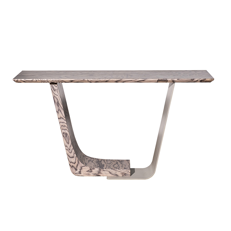 Запросить индивидуальное предложениеЭта консоль из светлого шпона привлекает внимание выразительной архитектурной формой и благородной текстурой натурального дерева. Лёгкая, почти скульптурная конструкция с изящным металлическим основанием создаёт ощущение баланса и визуальной динамики, не утяжеляя пространство. Плавный изгиб опоры подчёркивает дизайнерский характер предмета, делая его самостоятельным акцентом интерьера. Дизайнерская консоль светлый шпон органично вписывается в современные пространства в стиле modern luxury, современная классика и минимализм, добавляя интерьеру элегантность и продуманную выразительность.