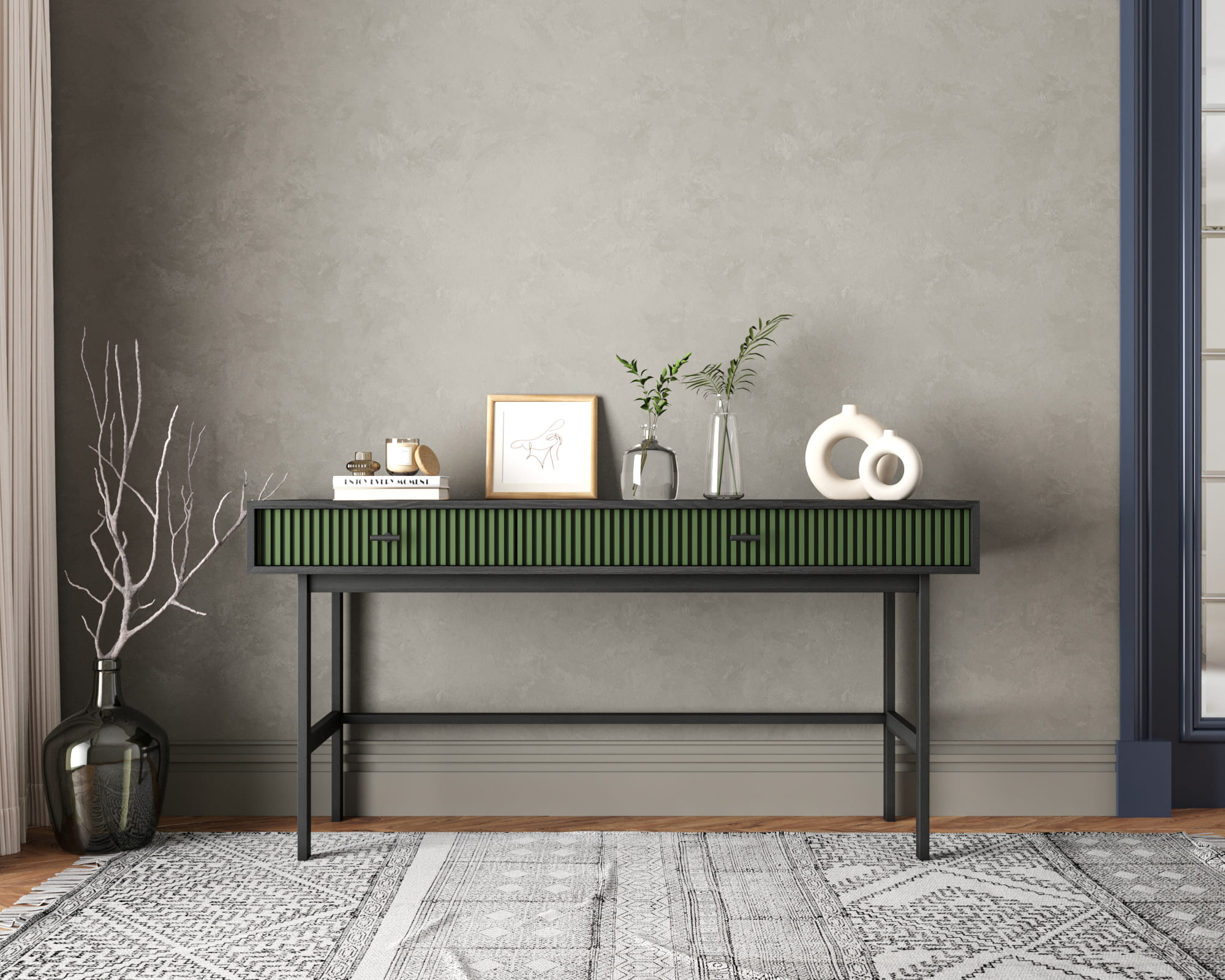 Консоль с двумя ящиками "Emerson" арт EM22/green/L