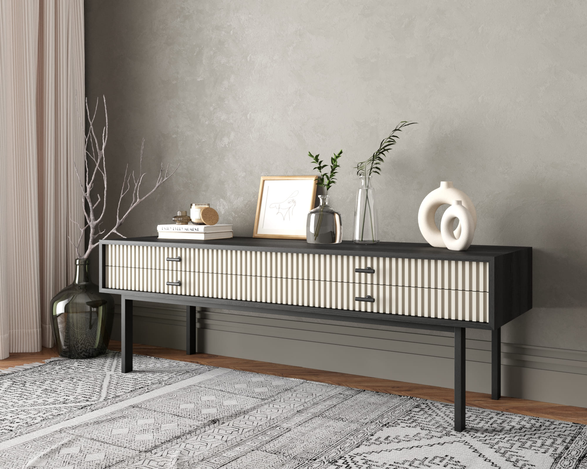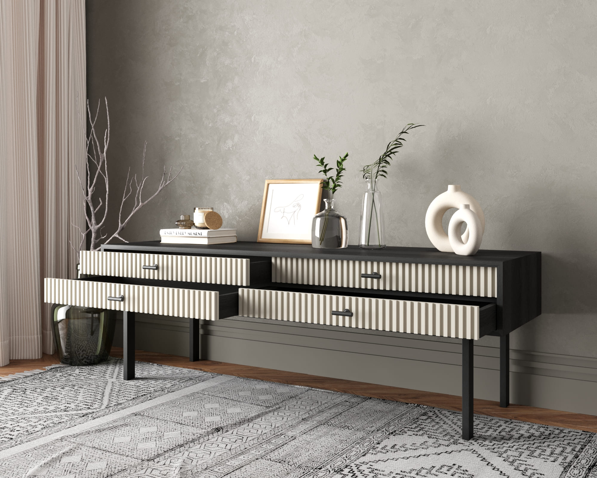 Консоль с четырьмя ящиками "Emerson" арт EM23/milky/L