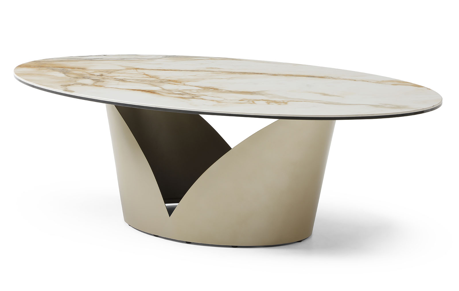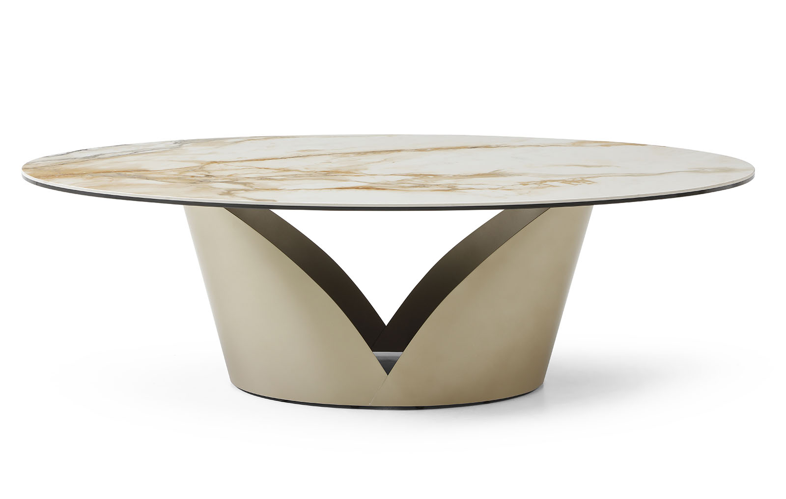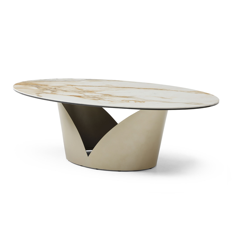 Металлическое подстолье в оттенке золотистый шампань придаёт модели элегантность и лёгкий акцент роскоши, оставаясь при этом устойчивым и надёжным.