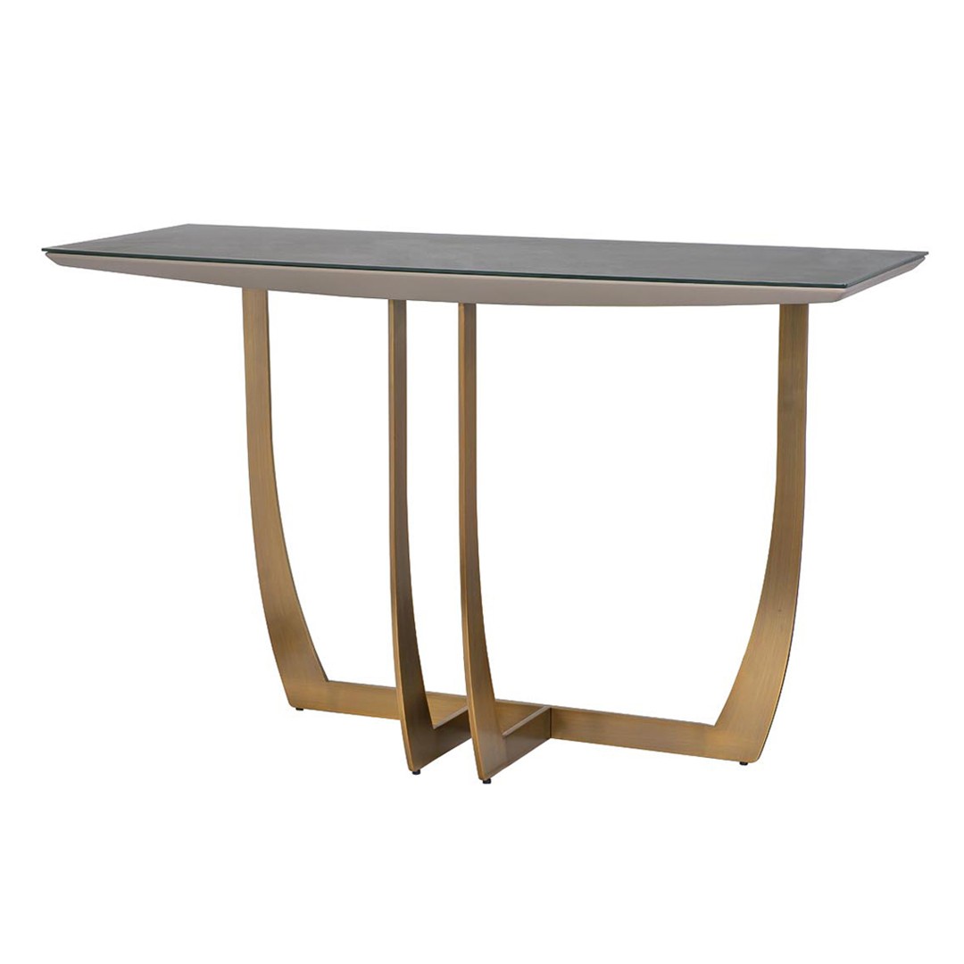 Запросить индивидуальное предложениеCуперсовременная консоль из мебельной коллекции Space от ведущего бельгийского дизайнера Тома Де Вульфа воплощает последние тенденции европейской интерьерной моды. Столешница из серого МДФ покрыта закаленным 5мм стеклом, обработанным по уникальной технологии, в результате которой поверхность приобретает гладкую и бархатистую фактуру, будто обкатанную морем. Оригинальная фигурная опора медного цвета заменяет традиционные ножки, обеспечивая устойчивость и безопасность конструкции. Все части консоли выполнены из исключительно качественных материалов по самым современным технологиям.