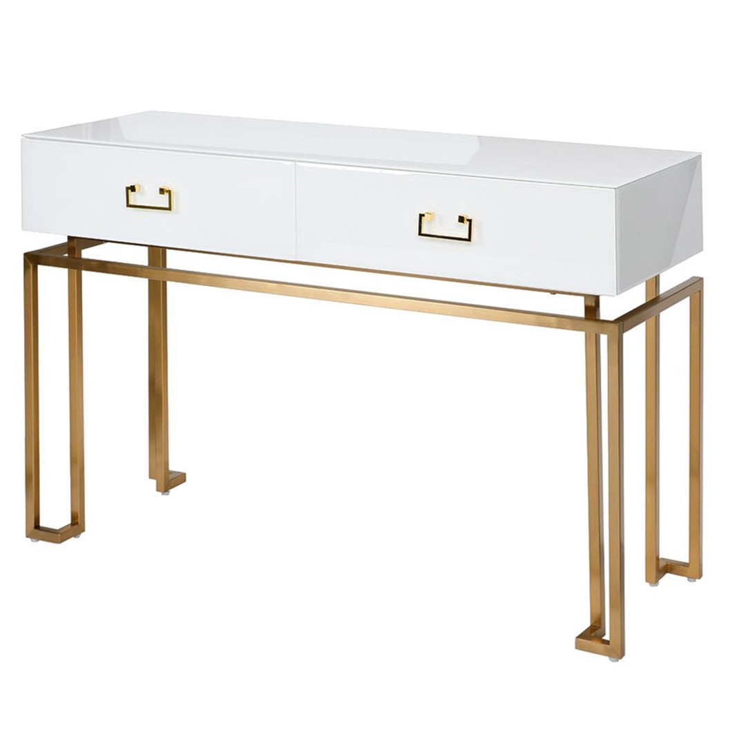 Запросить индивидуальное предложениеПредставленная консоль с ящиками – элегантный и удобный предмет интерьера. Эта вещь, помимо предельной эстетичности, еще и весьма функциональная. Наличие ящичков позволяет использовать предмет для хранения бытовых мелочей. Это поможет организовать пространство, держать вещи в порядке. Такая белая консоль напоминает нечто среднее между изящным комодом и тумбой. Вы сможете разместить консоль из стекла в гостиной или спальне. Она прекрасно сочетается с современными стилями интерьера.