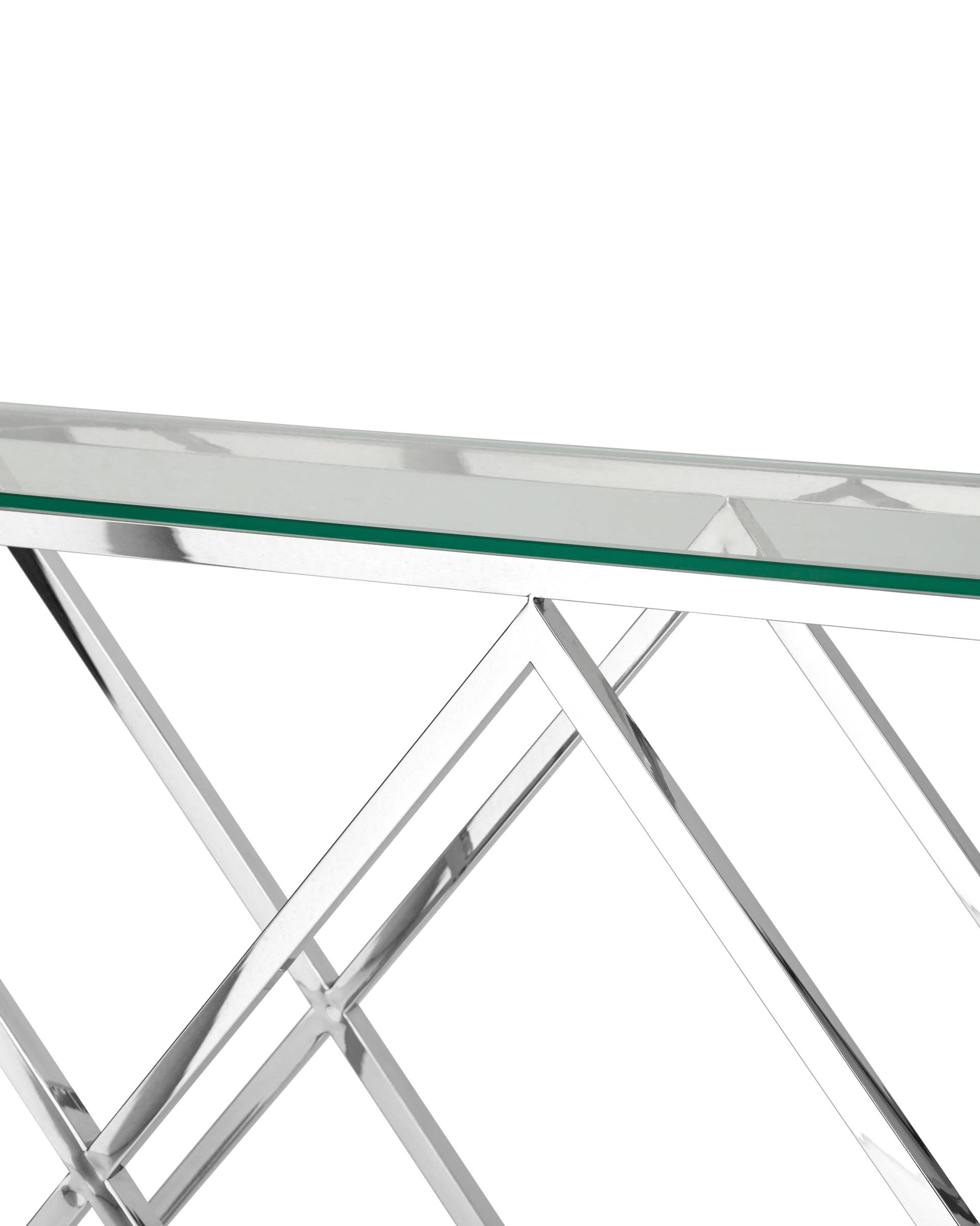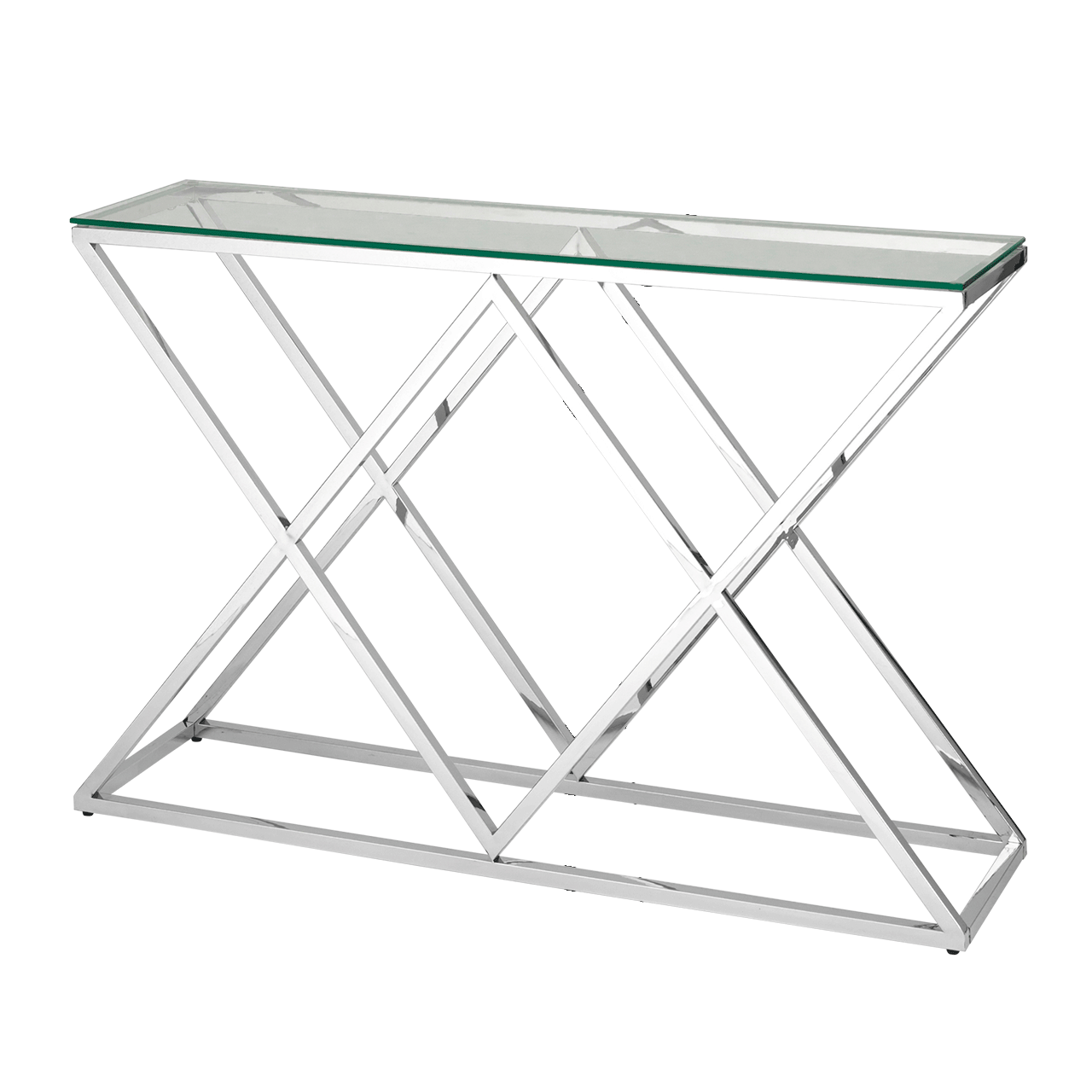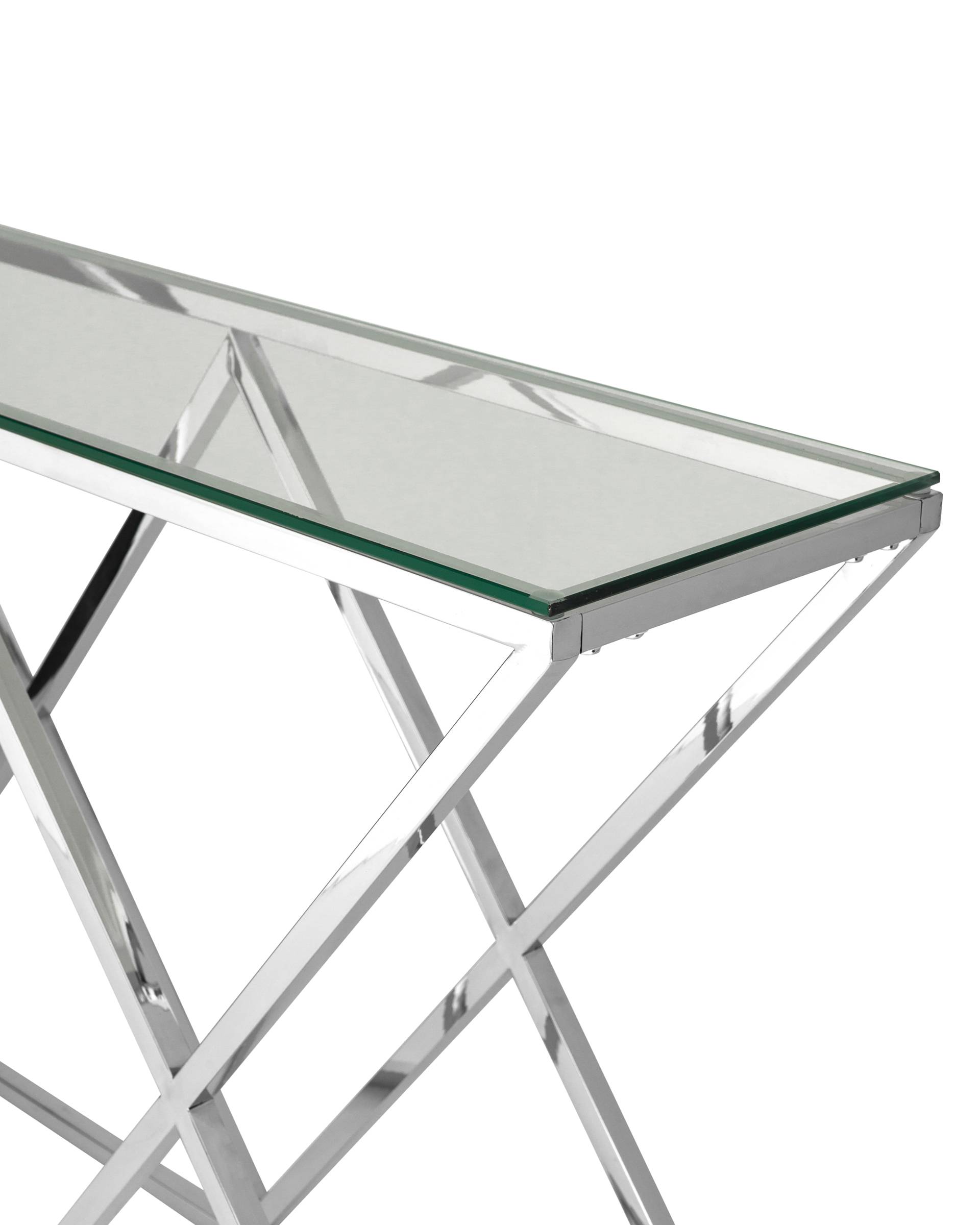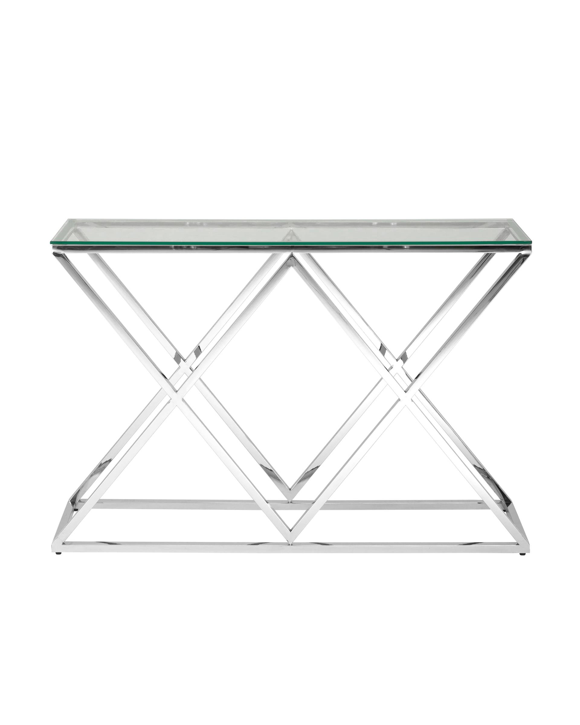 Запросить индивидуальное предложениеКонсоль ИНСИГНИЯ благодаря оригинальной форме станет ярким дизайнерским акцентом в интерьере. Каркас консоли изготовлен из нержавеющей стали, столешница - закаленное стекло.