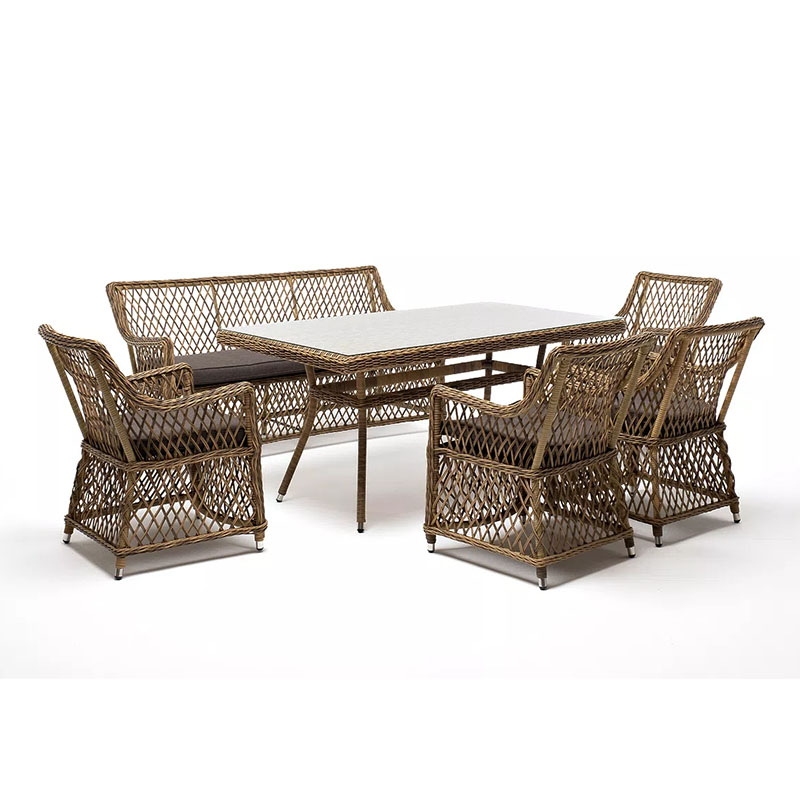КОМПЛЕКТ "Катания" обеденная группа плетеная на 6 персон, цвет соломенный