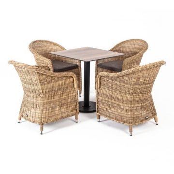 "Каффе" обеденная группа на 4 персоны, стулья соломенные