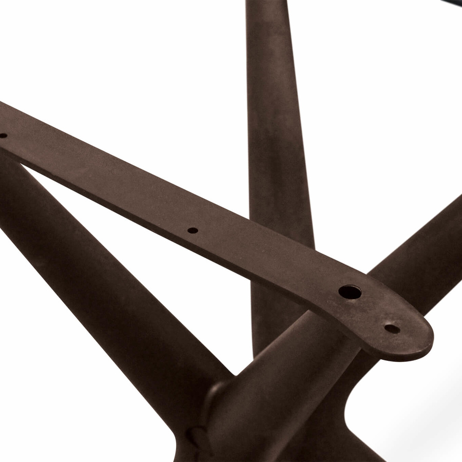 Графика и геометрия рисунка столешницы вдохновлена легендарной каменной кладкой из Перу. Они придают изделию эксклюзивный вид. Столешница имеет безопасный плавный закругленный переход от лицевой поверхности к боковым кромкам. Изящные перекрещивающиеся ножки повторяют натуральные изгибы деревьев.