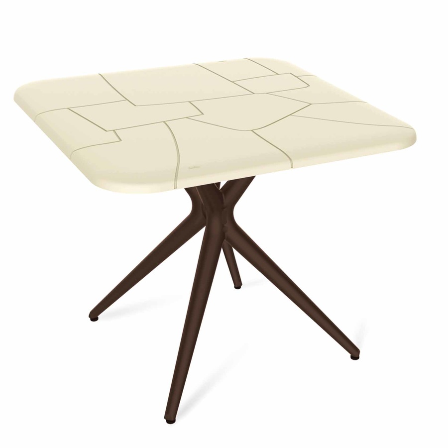 Графика и геометрия рисунка столешницы вдохновлена легендарной каменной кладкой из Перу. Они придают изделию эксклюзивный вид. Столешница имеет безопасный плавный закругленный переход от лицевой поверхности к боковым кромкам. Изящные перекрещивающиеся ножки повторяют натуральные изгибы деревьев.