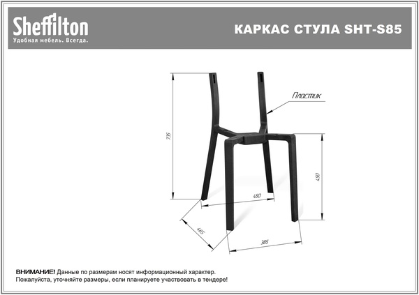 Стул и основание выполнены из полипропилена с армирующими добавками, благодаря которым повышается жесткость и надежность.