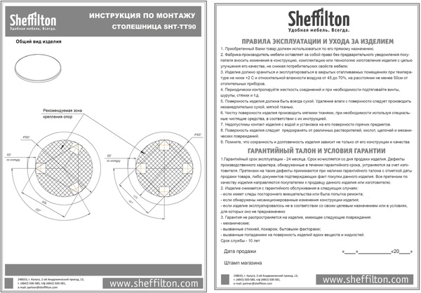 Столешница из МДФ отличается повышенной жесткостью и устойчивостью к окружающим воздействиям. Опоры выполнены из металлической трубы диаметром 25 мм. Окрашены порошковой краской, устойчивой к механическому воздействию. Максимальная статическая нагрузка на каркас – 260 кг.