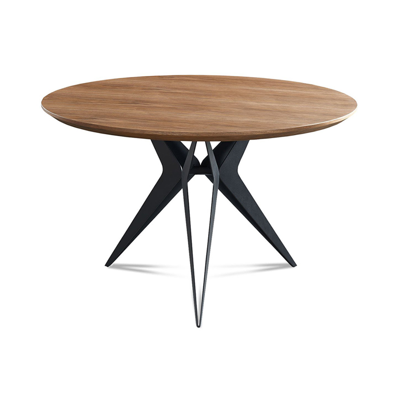 Круглый Eliza Grand (Элиза Гранд) - небольшой обеденный стол с оригинальным подстольем. Столешница диаметром 120 см изготовлена из MDF толщиной 4 см и декорирована натуральным шпоном ореха, ножки из стали матово-черного цвета. Круглая форма обеспечивает дополнительное удобство: большую вместимость, чем аналогичные квадратные модели, а также отсутствие углов, о которые можно удариться. За столом диаметром 120 см комфортно размещаются 6 человек. Такой стол позволяет разместиться с комфортом, ведь центральное расположение ножки - более удобное для сидящих. Особенно хорошо такой стол будет смотреться в интерьерах, оформленных в стилях: модерн или лофт.