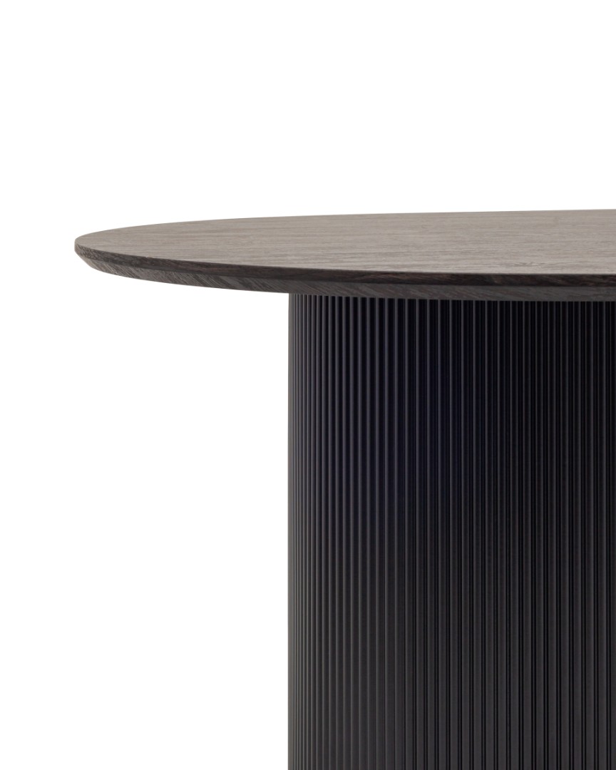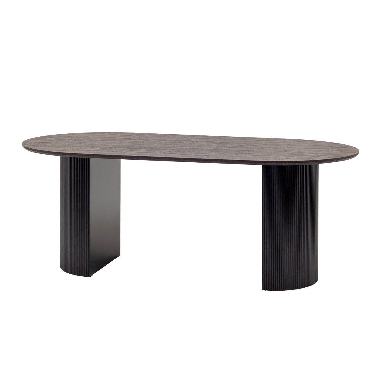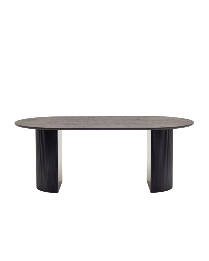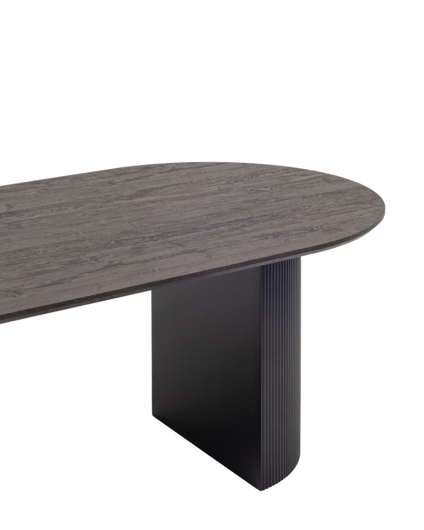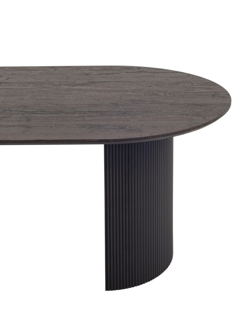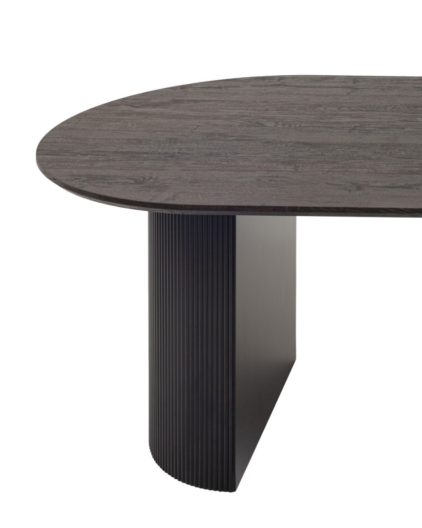 Запросить индивидуальное предложениеОбеденный стол Ballet. Столешница выполнена из прочного и долговечного МДФ. Темная поверхность столешницы гармонично сочетается с массивными ножками черного цвета. Простая овальная форма стола позволит легко вписать его в современный интерьер, стол украсит кухню, гостиную или современное кафе, ресторан. Опорные плиссированные ножки в лаконичном дизайне надёжно удерживают всю конструкцию и дополняют монолитный образ. Вес стола - 62 кг, высота - 75 см.