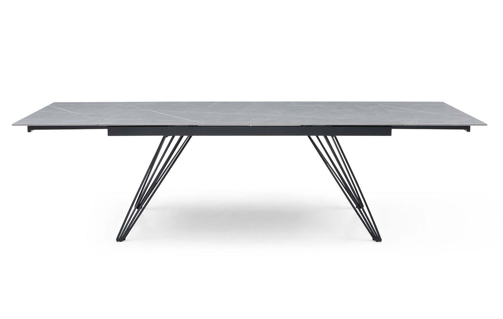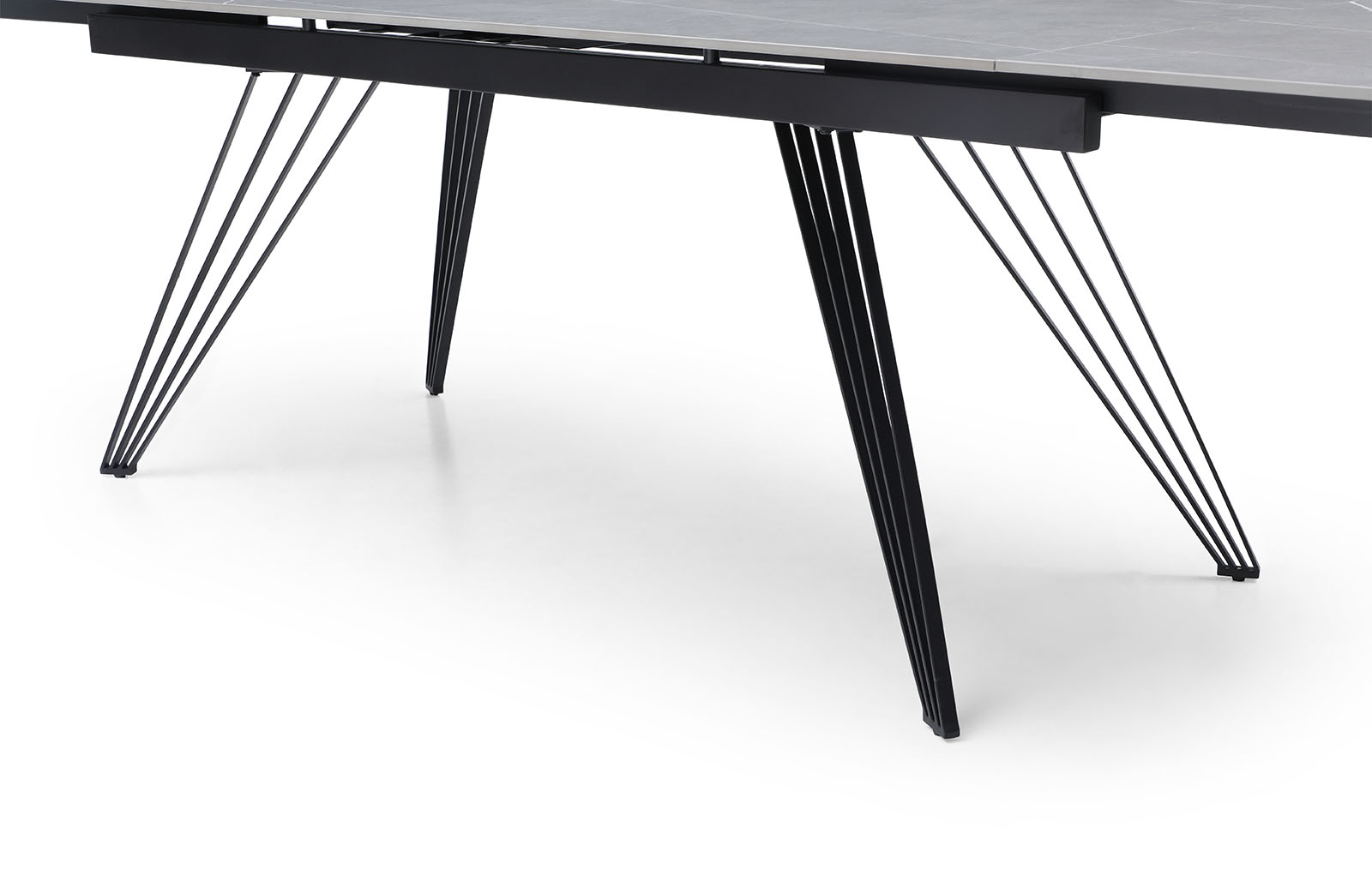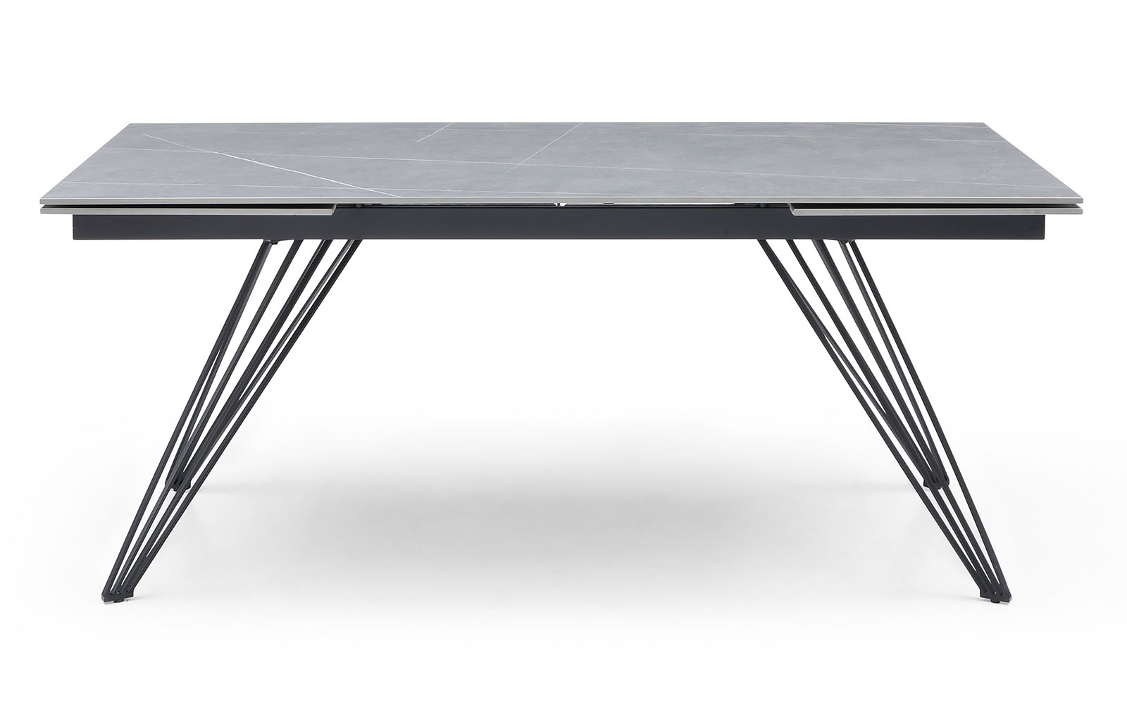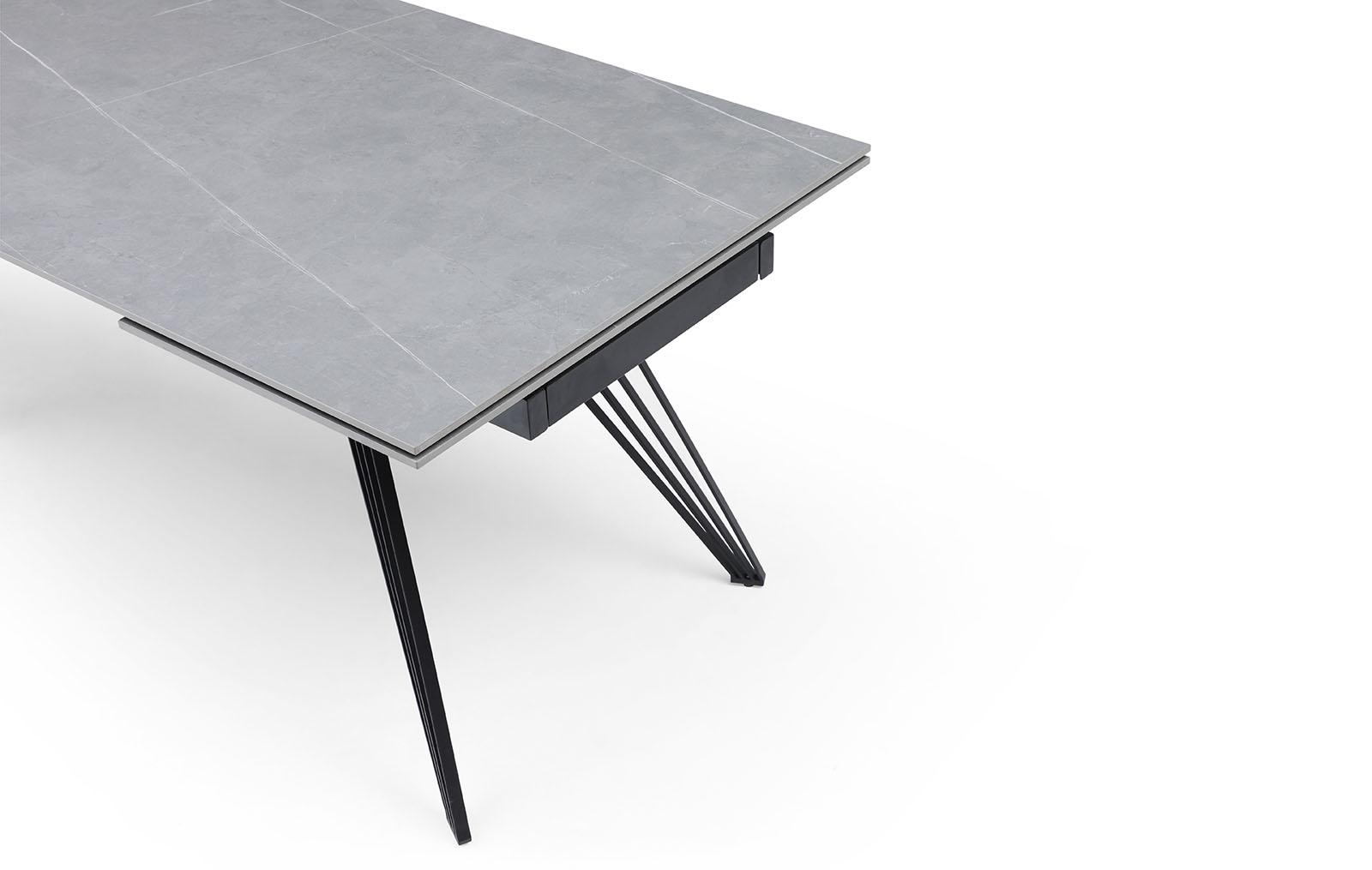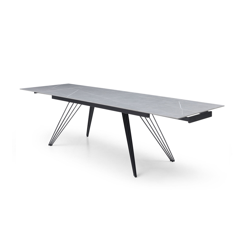 Раскладной обеденный стол Parma (Парма) с практичной керамической столешницей из матовой серой керамики и металлическими ножками, состоящими из множества тонких прутиков, с защитным напылением - отличный выбор для украшения кухни, столовой, гостиной. Особенно удачно сочетание керамики и металла будет смотреться в таких стилях, как хай-тек, минимализм, лофт, фьюжн.