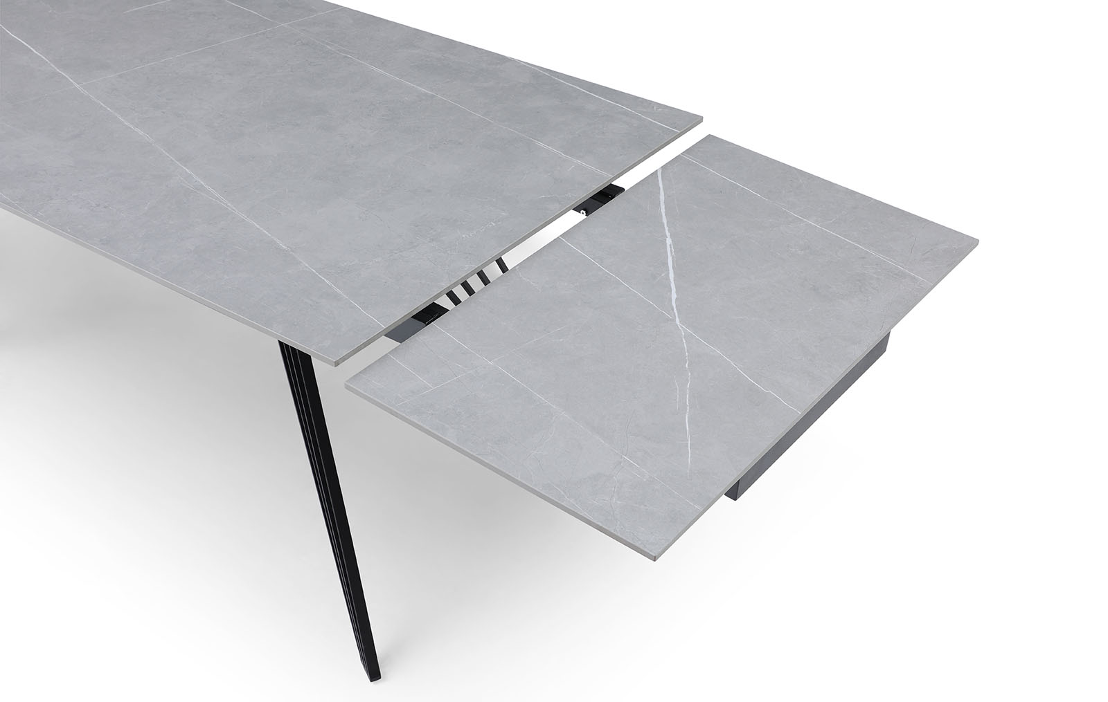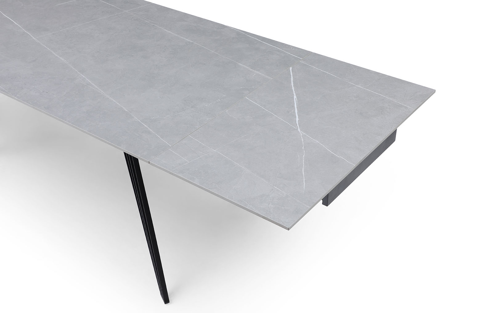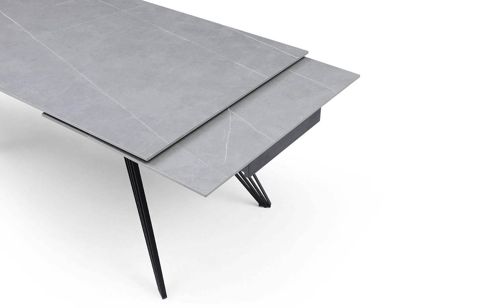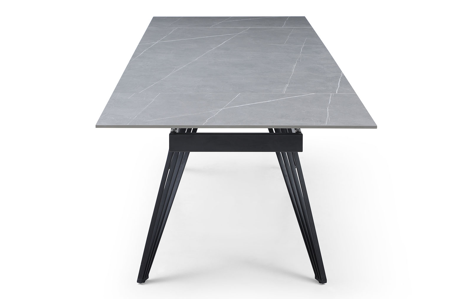 Раскладной обеденный стол Parma (Парма) с практичной керамической столешницей из матовой серой керамики и металлическими ножками, состоящими из множества тонких прутиков, с защитным напылением - отличный выбор для украшения кухни, столовой, гостиной. Особенно удачно сочетание керамики и металла будет смотреться в таких стилях, как хай-тек, минимализм, лофт, фьюжн.