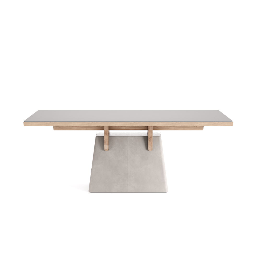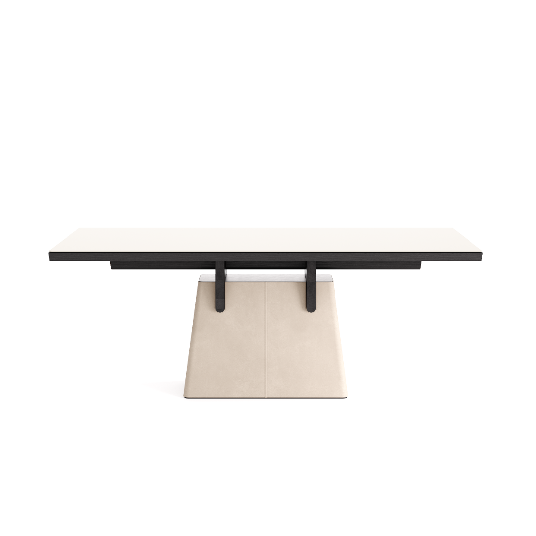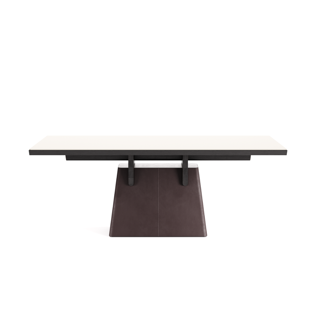 Запросить индивидуальное предложениеСтолы серии КЛИН – это уникальное сочетание материалов и форм. Скругленная трапециевидная опора обшита качественным кожаным чехлом с декоративными отстрочками. Верх опоры венчает деталь из нержавеющей стали, изготовленная методом ручной шлифовки. Клиновидные опоры столешницы и царга выполнены из прочного массива дуба, и могут быть окрашены в любой цвет из представленной палитры. Столешница изготавливается на выбор из МДФ, шпонированного дубом, матового инновационного пластика FENIX NTM или керамогранита. Стол достаточно вместительный и позволяет с комфортом разместить всех гостей или членов семьи. А благодаря разнообразию размеров, можно подобрать идеальный вариант для любого помещения.