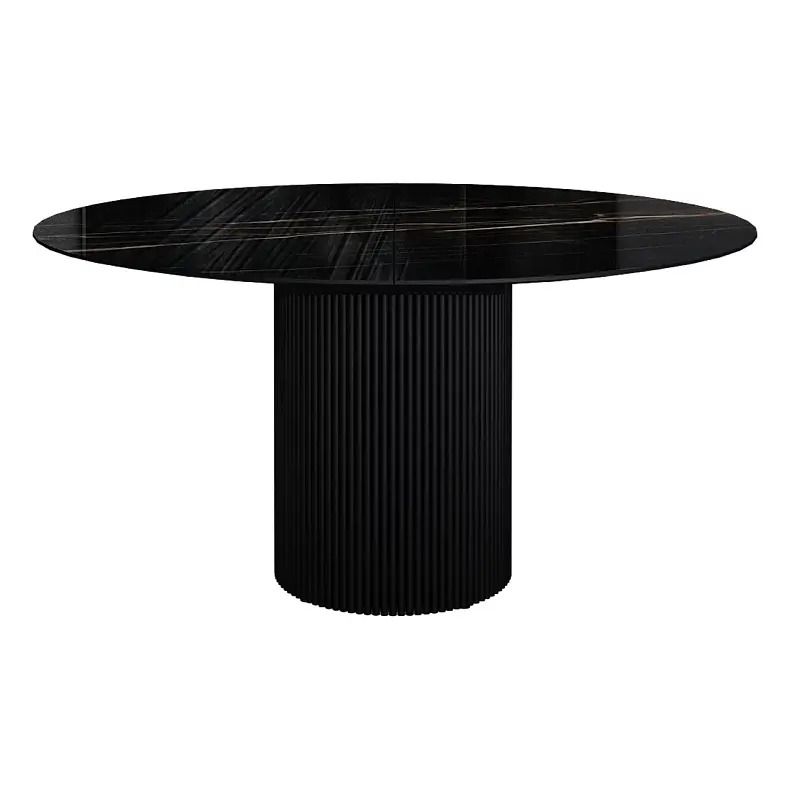 Стол раскладной круглый Nolan 120+40, керамика глянцевая, черная