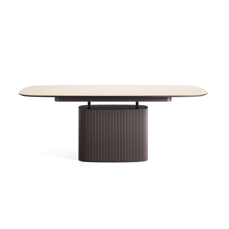 Запросить индивидуальное предложениеРаздвижной стол ВЕЛЬВЕТ СЛ привлекает сочетанием различных геометрических форм и материалов. Его опора, выполненная из металлических трубок, напоминает фактуру вельвета. Металлические стойки и царга добавляют ощущение прочности и долговечности. Столешница в форме суперэллипса изготавливается на выбор из МДФ с покрытием из шпона дуба, матового инновационного пластика FENIX NTM, HPL-пластика с текстурой «под мрамор» или керамогранита. Раздвижной механизм делает стол более универсальным и удобным.