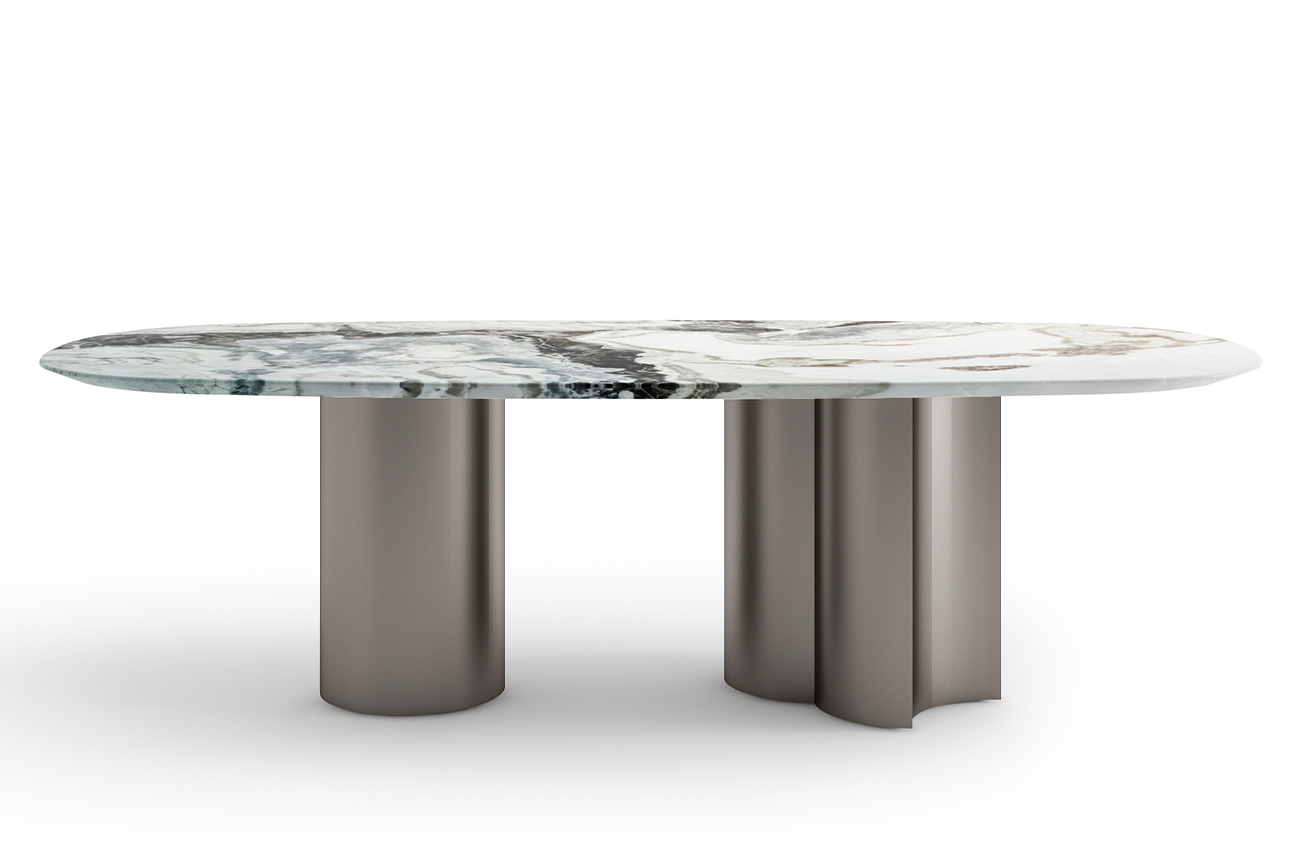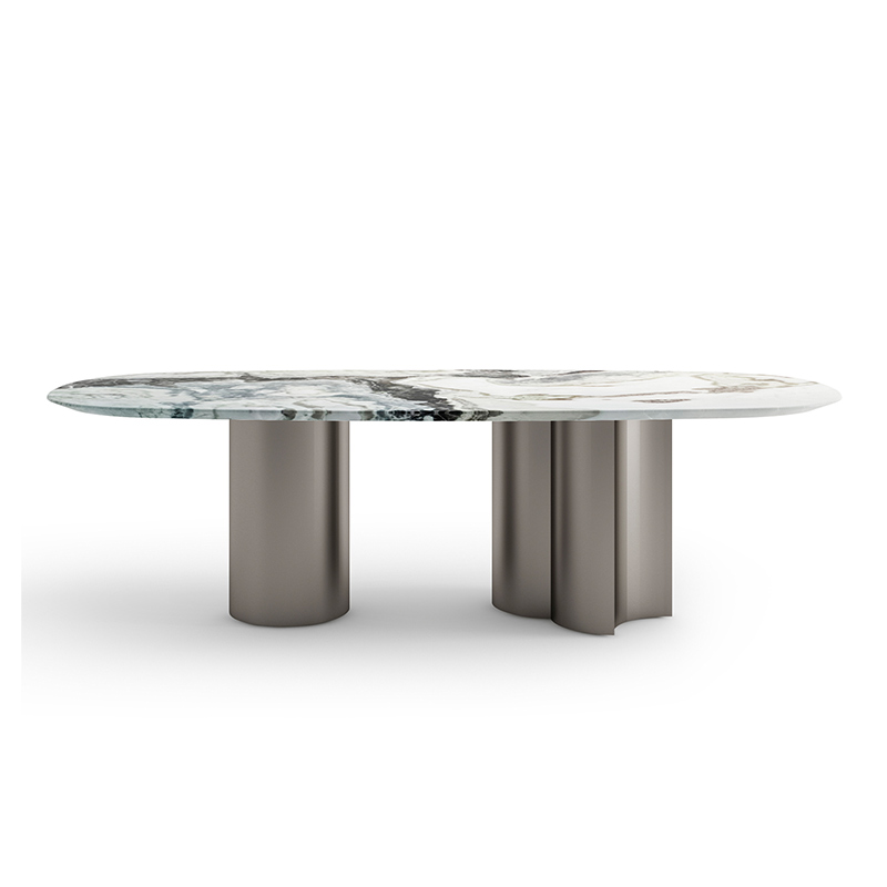 Запросить индивидуальное предложениеОбеденный стол с мраморной столешницей выглядит фундаментально и массивно за счет основания в виде колонн из нержавеющей стали. Такое стилистическое решение добавляет мебели не только устойчивости и надежности в эксплуатации, но и подчеркивает ее индивидуальность, статусность. Стол выполнен из материалов премиум качества – столешница из натурального мрамора Picasso и металлическая основа с легким благородным блеском. В результате получился дизайнерский обеденный стол, который займет достойное место в современном интерьере столовой или кухни. Также на сайте есть большой выбор стульев и кресел, которые составят стильную компанию этому столу. Толщина столешницы 36мм.
