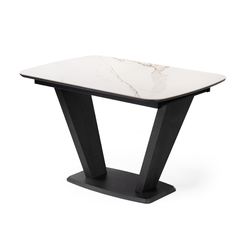Стол на тумбе Петир 120(160)х80х75 белый мрамор / графит / темный камень
