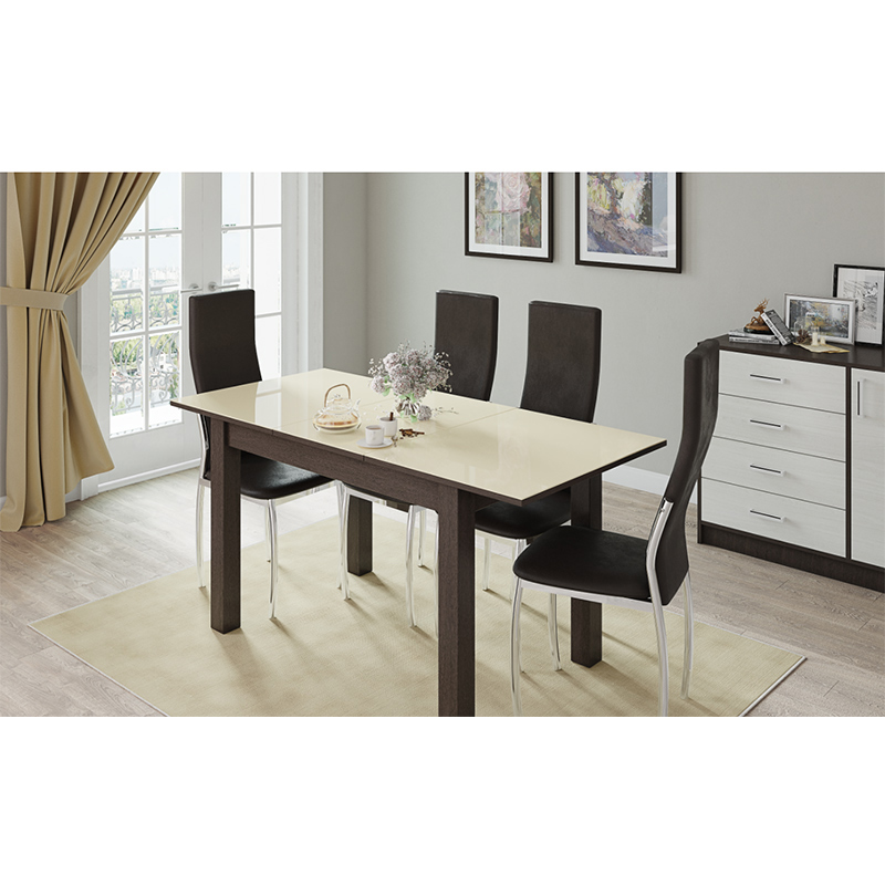 Стол обеденный раскладной Бруно 80, венге/лакобель ваниль
