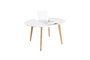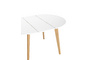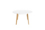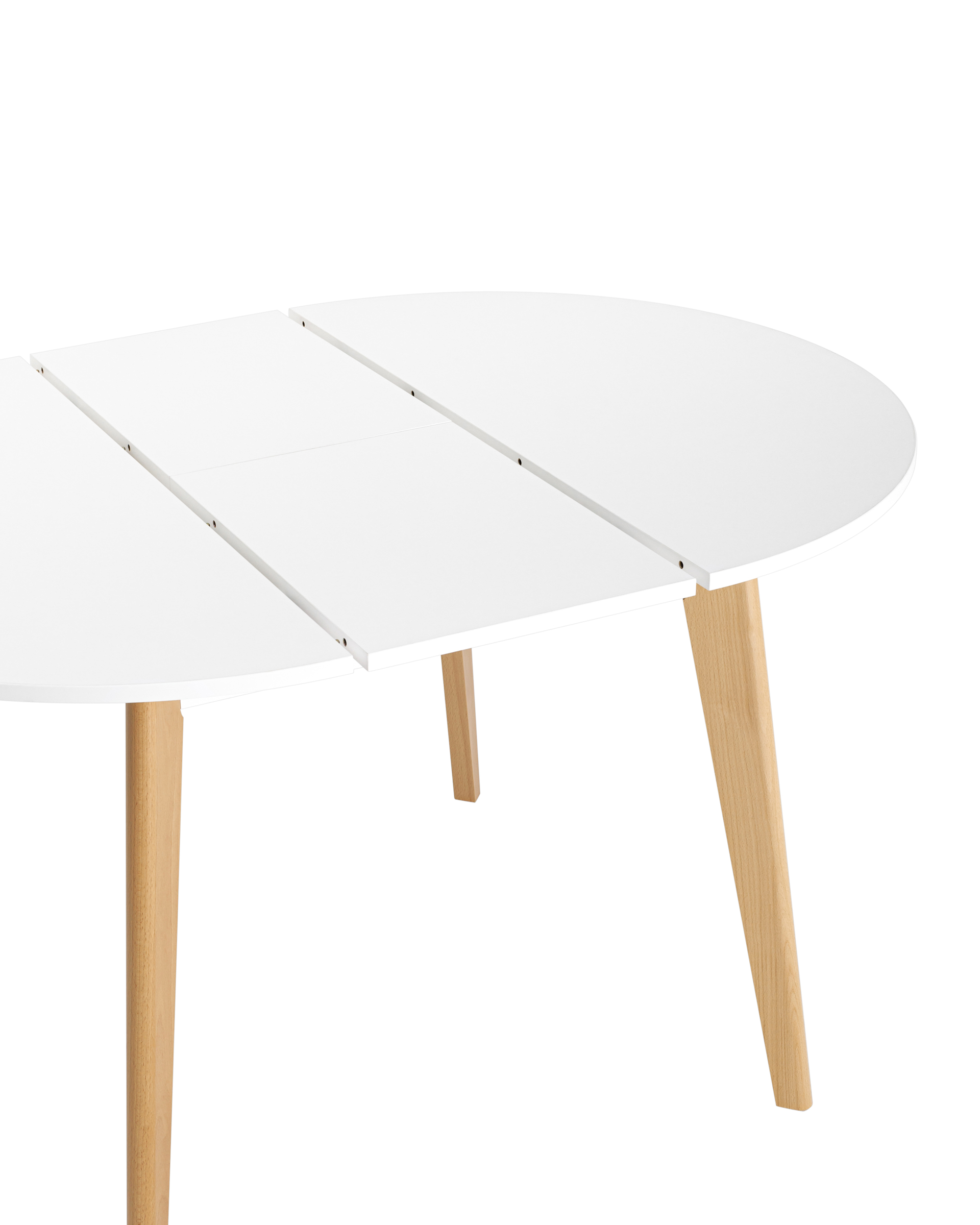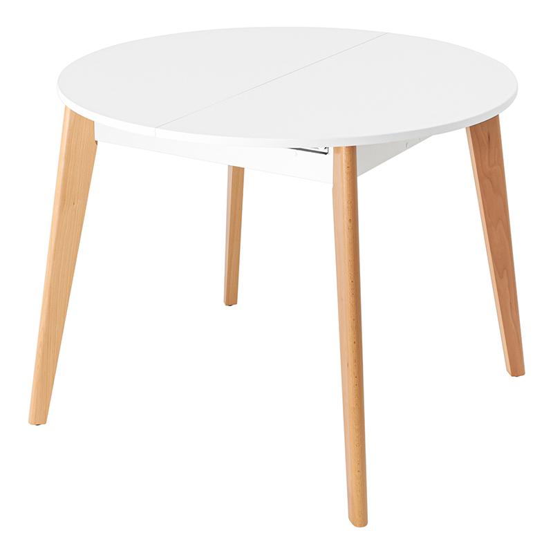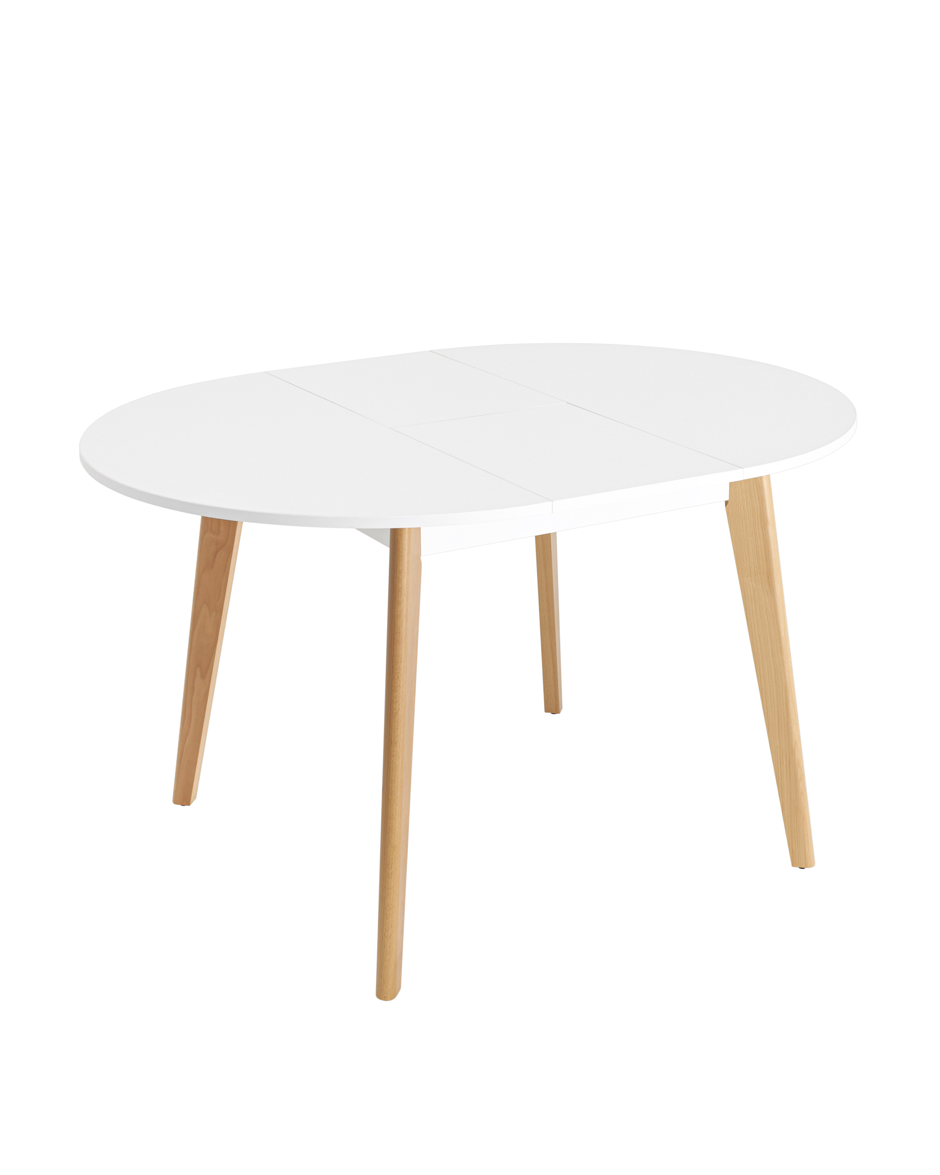 Ножки выполнены из массива бука, покрашены в белый цвет. Дополнительная вставка в цвет столешницы. Стол легко разложить, механизм раскрытия "бабочка".
