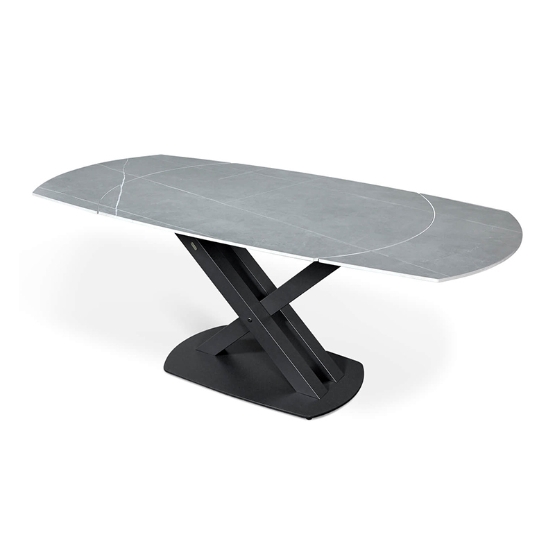 Запросить индивидуальное предложениеРаскладной обеденный стол SHT-T75 из спеченного камня на металлическом подстолье - это идеальное сочетание красоты и практичности. Этот стол прекрасно дополнит интерьер гостиной, столовой, рабочего кабинета. Рисунок и текстура натурального камня столешницы придает готовому столу дорогой и нарядный вид.
