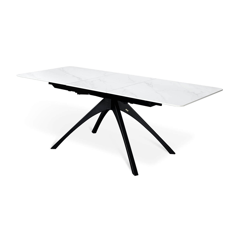 Запросить индивидуальное предложениеРаскладной обеденный стол SHT-T76 из спеченного камня на металлическом подстолье - это идеальное сочетание красоты и практичности. Этот стол прекрасно дополнит интерьер гостиной, столовой, рабочего кабинета. Рисунок и текстура натурального камня столешницы придает готовому столу дорогой и нарядный вид.