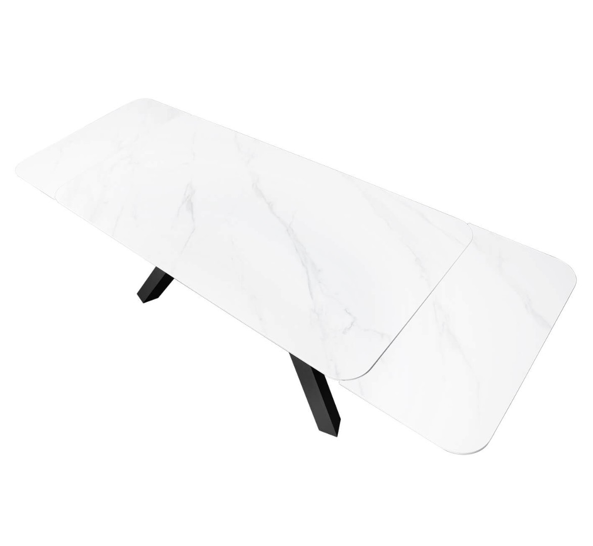 Раскладной обеденный стол SHT-T77 из спеченного камня на металлическом подстолье - это идеальное сочетание красоты и практичности. Этот стол прекрасно дополнит интерьер гостиной, столовой, рабочего кабинета. Рисунок и текстура натурального камня столешницы придает готовому столу дорогой и нарядный вид.