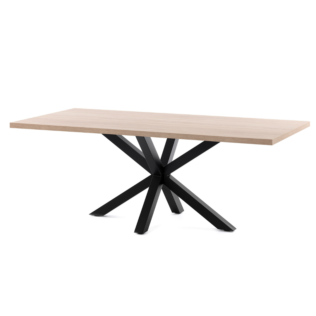 Стол Arya 180x100 от фабрики La Forma – надежная и прочная модель с эффектной деталью. Стол исполнен безупречно. Его концепция – минимализм, но не скучный, а яркий и эффектный. Восьмиконечная стойка – необычный элемент, который выделяет изделие среди аналогов. Впечатляющая площадь стола – однозначный плюс для большой семьи или дружной компании. Стол прямоугольной формы. Столешница выполнена из МДФ дуба. Она цельная, с полным сохранением древесного орнамента. Для защиты от негативных факторов во время эксплуатации поверхность покрыта бесцветным лаком. Опора сделана из металла и покрыта белой или черной эпоксидной краской или выполнена в хроме (зависит от выбранной модели). Она имеет восьмиконечную конструкцию, состоящую из ножек в виде брусков одинакового размера. Пересекаясь друг с другом, они симметрично поддерживают стол и опираются на пол. У каждой ножки есть наконечник для улучшения устойчивости на неровном покрытии. Размеры стола: длина – 160 см, ширина – 100 см, высота – 78 см. Вес изделия составляет 44,55 кг. Потребуется самостоятельная сборка. Инструкция, крепеж входят в комплектацию. Во избежание повреждения поверхности столешницы рекомендуется использовать скатерти или салфетки. В коллекцию Arya включены аналогичные модели со стеклянной столешницей.