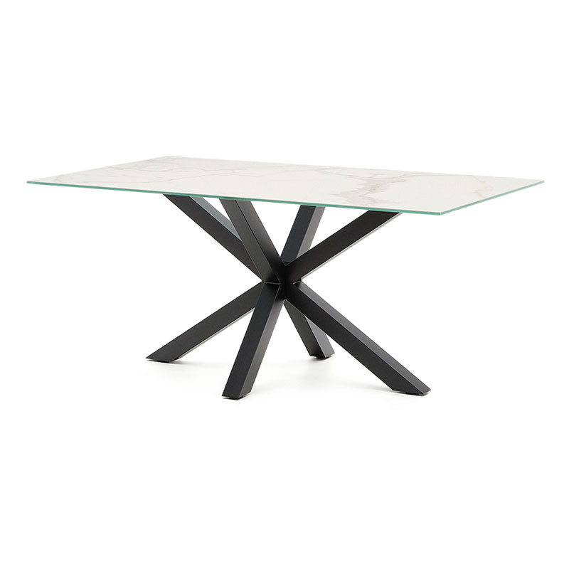 Arya Обеденный стол 160x90 черный с керамической столешницей Kalos Blanco
