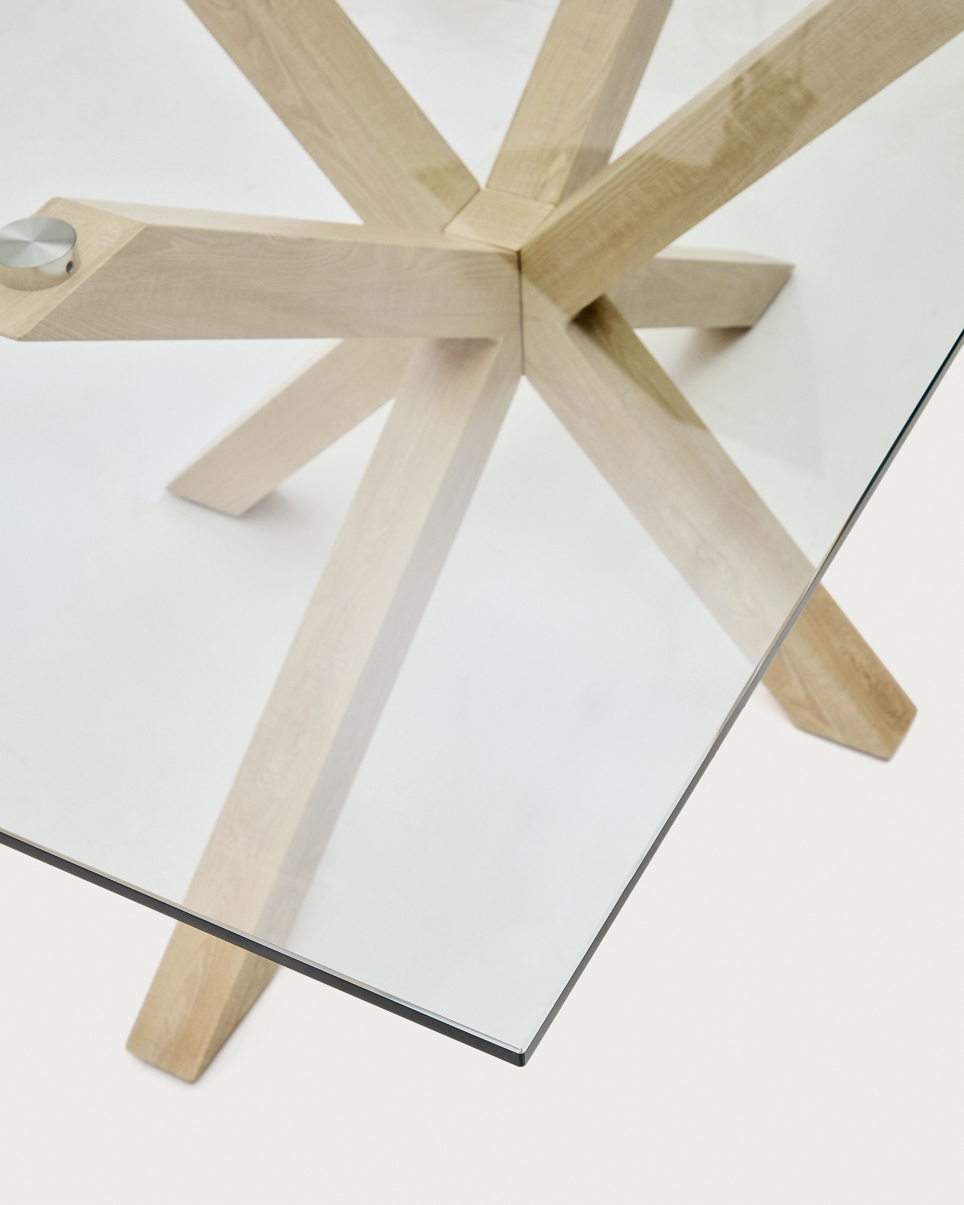 Стол прямоугольной формы. Прозрачная столешница выполнена из закаленного ударопрочного стекла толщиной 1,2 см. Края имеют обтекаемую огранку, что обеспечивает комфорт во время эксплуатации.
