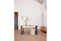 Запросить индивидуальное предложениеСтол Sono от фабрики La Forma – нескромные габариты для интерьера в стиле минимализм. Стол Sono – безупречная модель для стильных городских интерьеров, где акцент сделан на натуральные материалы, необычную геометрию, функциональность. Изделие состоит всего из трех элементов, оно конструктивно и внешне полностью соответствует минимализму. А прочная и массивная столешница – это явный плюс, чтобы присмотреться к этому столу получше. Стол прямоугольной формы. Для изготовления столешницы использовался массив натурального дерева (акация). Благодаря щадящей технологии обработки, сохранена фактура дерева, имеются неровности по краям, небольшие зазоры между досками. Все это придает изделию уникальный и самобытный внешний вид. Для защиты от негативных воздействий во время эксплуатации, столешница покрыта полиуретаном. Ее толщина составляет 4 см, что гарантирует прочность и надежность, даже при высоких весовых нагрузках. Опоры сделаны из металла, покрытого черной эпоксидной краской. Опоры потребуется прикрутить самостоятельно. Инструкция и крепеж включены в комплектацию. Во избежание повреждения поверхности столешницы рекомендуется использовать скатерти или салфетки. Цвета отделки указываются в соответствии с каталогом производителя. Допускается незначительное отклонение в цвете, обусловленное техническими особенностями цветопередачи фотографий.