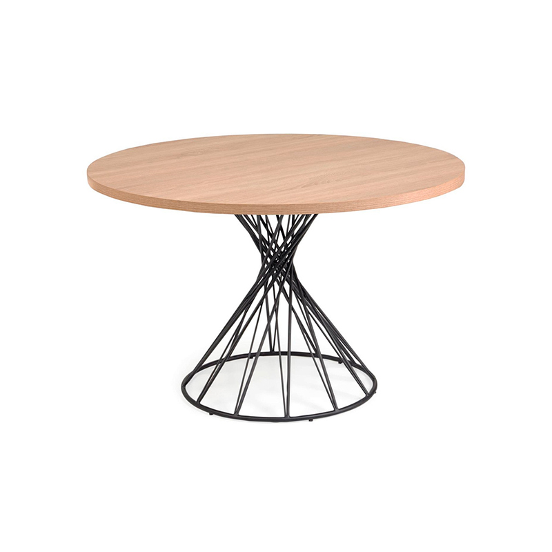 Круглый стол из меламина Niut Ø 120 см с натуральной отделкой и стальными черными ножками