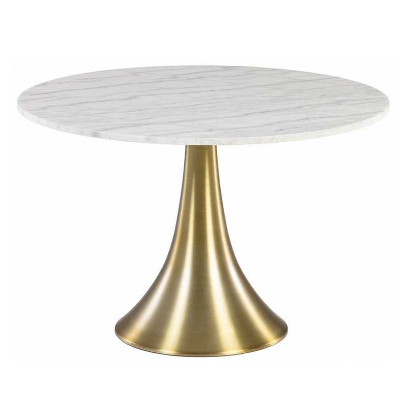Запросить индивидуальное предложениеOria круглый обеденный стол Ø 120 cm от фабрики La Forma – завораживающий блеск металла и красота мрамора для изысканных интерьеров. Круглый стол Oria – это особенная и удивительная модель, которая однозначно станет украшением в домашнем интерьере. Мраморная столешница в сочетании с позолоченной стойкой создает ощущение роскоши, но не примитивной, а исполненной со вкусом, показанной в меру. Стол гармонично впишется в европейский модерн неоклассику, романтизм. Стол круглой формы, состоит из мраморной столешницы и металлической стойки. Столешница имеет толщину 1,8 см. Она ударопрочная, долговечная, легко очищается от загрязнений (не использовать для ухода средства, содержащие абразивы). Стойка сделана из алюминия, покрыта позолотой. Благодаря широкому основанию (его диаметр составляет 55 см), обеспечивается устойчивость, равномерное распределение веса стола. Цвета отделки указываются в соответствии с каталогом производителя. Допускается незначительное отклонение в цвете, обусловленное техническими особенностями цветопередачи фотографий.