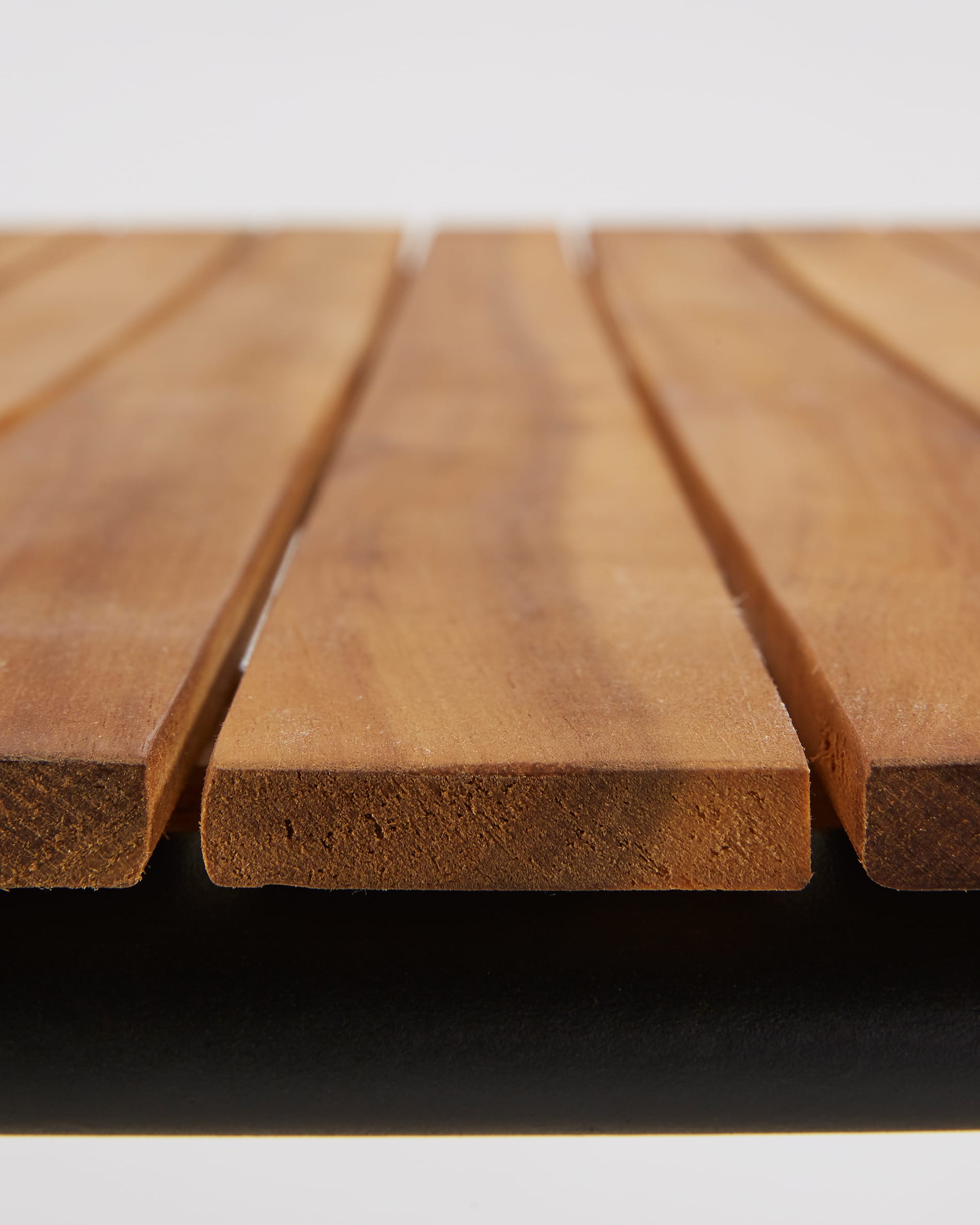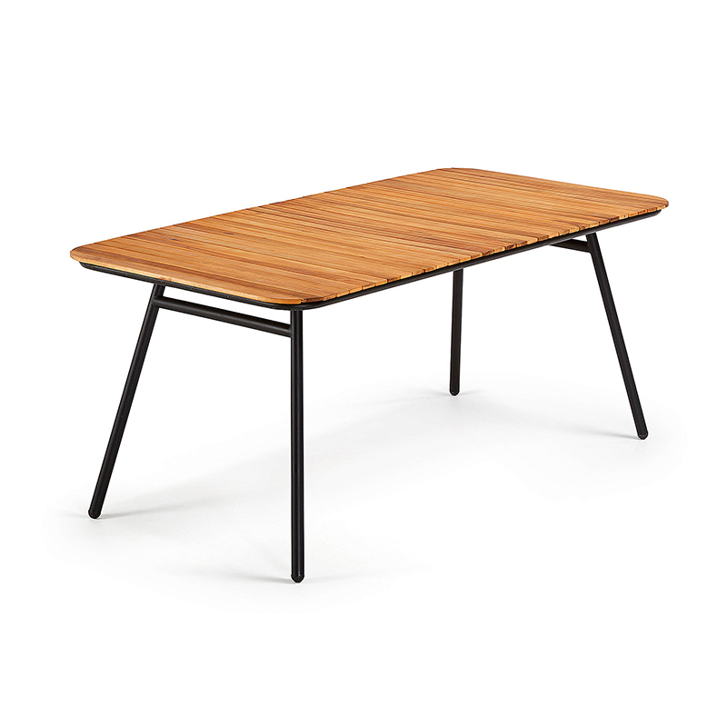 Запросить индивидуальное предложениеСтол Skod 180x90 черный акация от фабрики La Forma (ex Julia Grup) – надежная металлическая конструкция и уникальная деревянная столешница. Стол Skod – это гармоничный и универсальный предмет мебели для вашей уличной обстановки. Ведь семейный обед на свежем воздухе может принести больше удовольствия, если организовать его в окружении правильной мебели. Здесь натуральная древесина акации – красота и натуральность, которая окажется с вами в непосредственной близости. Стол имеет прямоугольную форму. Он собран из металлической опоры и деревянной столешницы. Столешница толщиной 1,5 см имеет реечную структуру, что является плюсом при эксплуатации изделия на улице (поверхность быстро просыхает). Материал изготовления – массив акации с уникальной зернистостью и своим тоном. Поверхность обработана полиуретаном, который защищает от влаги и ультрафиолета. Опора имеет трубчатую структуру, с диаметром ножек 3,5 см. Она окрашена в черный матовый цвет и, тем самым, защищена от появления ржавчины. Для надежности и стойкости к нагрузкам предусмотрено две перекладины. Максимальная нагрузка – 60 кг. Ножки оснащены пластиковыми наконечниками, которые защищают напольное покрытие от деформации. Общая вместимость – 8 человек. Потребуется минимальная сборка. Во избежание повреждения поверхности столешницы рекомендуется использовать скатерти или салфетки. Цвета отделки указываются в соответствии с каталогом производителя. Допускается незначительное отклонение в цвете, обусловленное техническими особенностями цветопередачи фотографий.