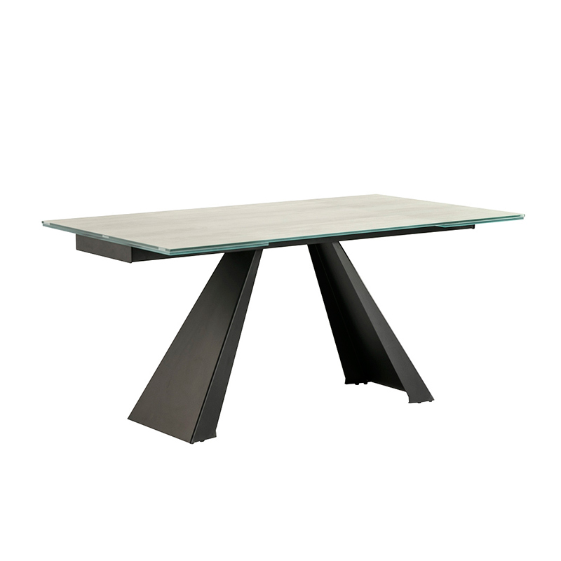 Запросить индивидуальное предложениеРаздвижной обеденный стол из металла с матовой черной отделкой и столешницей из закаленного стекла толщиной 10 мм с белыми прожилками и высокопрочным покрытием. Два выдвижных крыла на 40 см. Цвета отделки указываются в соответствии с каталогом производителя. Допускается незначительное отклонение в цвете, обусловленное техническими особенностями цветопередачи фотографий.