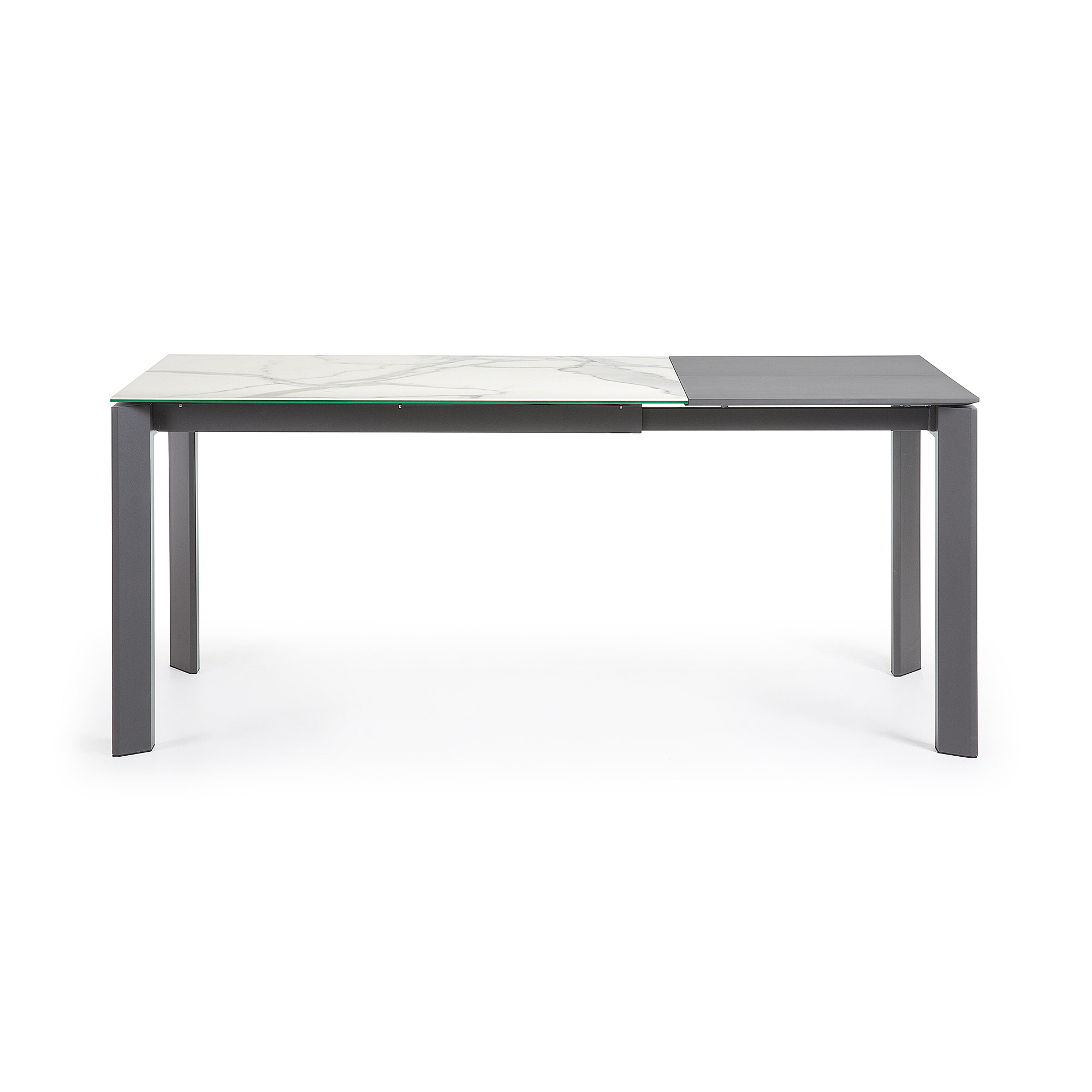 Стол Atta – это победа инженерной мысли. Так мастерски спрятать выдвижной механизм и замаскировать его под тонкой столешницей смогут только профессионалы. Керамика – точно подобранный материал, который делает изделие эффектным, даже несмотря на принадлежность к минимализму.