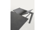Выдвижной механизм находится справа. Чтобы раздвинуть стол, необходимо потянуть за ножки и достать сложенную пополам дополнительную панель (она из МДФ). Раздвижной механизм сделан из нержавеющей стали.