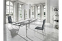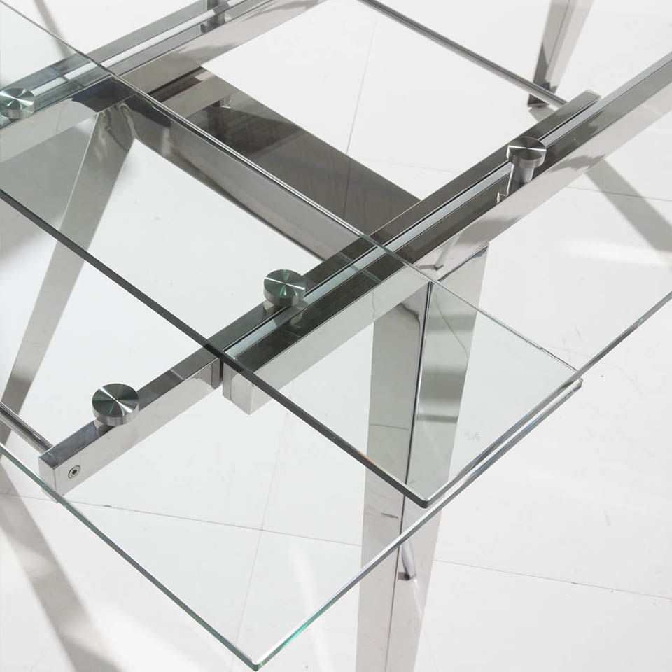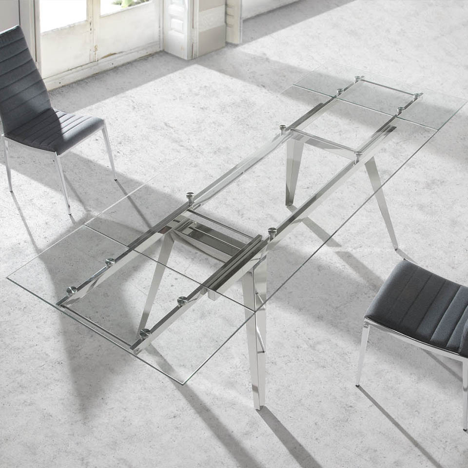 Запросить индивидуальное предложениеСтол обеденный D2048 от фабрики Angel Cerda. — смелый дизайн и бесспорная функциональность. Стол создан, чтобы удивлять и радовать своими эксплуатационными свойствами. Неожиданно красиво и интересно смотрится выставленный напоказ раздвижной механизм. А длина стола, которая за пару секунд может увеличиться почти на метр, — важное свойство, которые оценит каждый гостеприимный хозяин. Стол выполнен из стали и ударопрочного закаленного стекла. Столешница прямоугольной формы в сборе имеет длину 160 см. Если раздвинуть ее края, то за счет дополнительных секций (каждая по 40 см), длина станет 240 см. Опирается столешница на металлический каркас, от которого отходят четыре ножки трапециевидной формы. Они сделаны из хромированной стали — прочного и эстетичного современного материала. Ноги стоят не под прямым углом, а чуть расходятся в стороны, тем самым обеспечивая хорошую устойчивость конструкции, даже при высоких весовых нагрузках и полностью раздвинутой столешнице. Цвета отделки указываются в соответствии с каталогом производителя. Допускается незначительное отклонение в цвете, обусловленное техническими особенностями цветопередачи фотографий.
