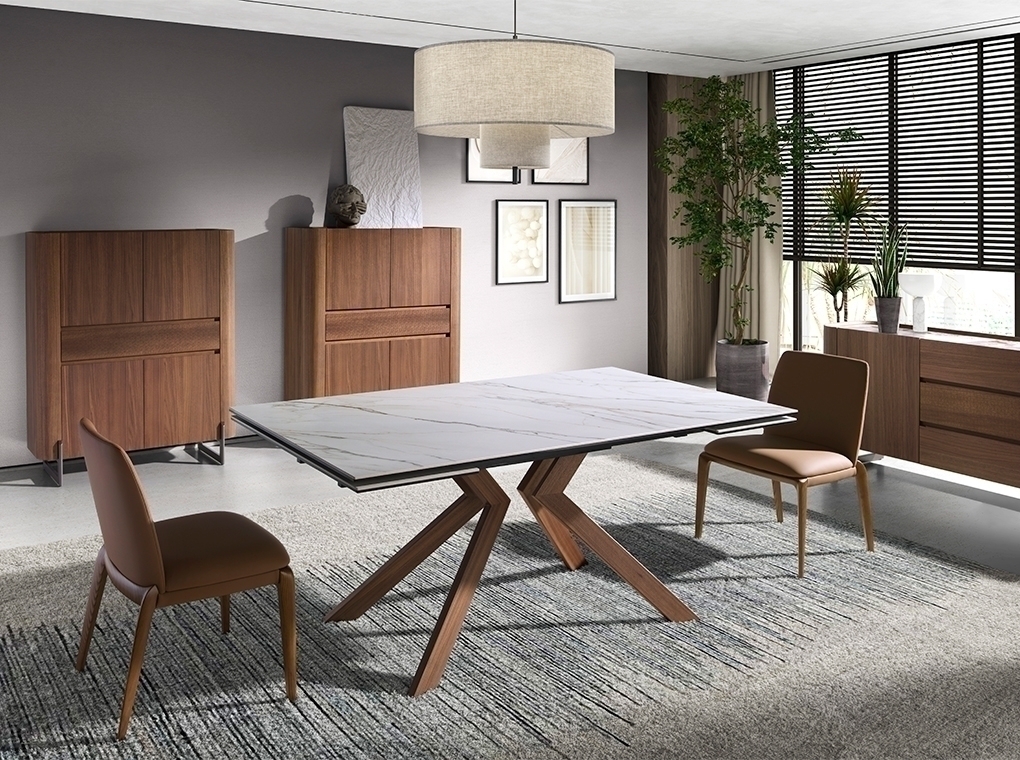 Запросить индивидуальное предложениеПрямоугольный раздвижной обеденный стол современного дизайна со столешницей из белого фарфора и мрамора с серыми и коричневыми прожилками в матовой отделке. Деревянные ножки, покрытые шпоном натурального ореха, а также адаптируемость делают его полностью функциональным и универсальным предметом мебели для повседневного использования. Цвета отделки указываются в соответствии с каталогом производителя. Допускается незначительное отклонение в цвете, обусловленное техническими особенностями цветопередачи фотографий.