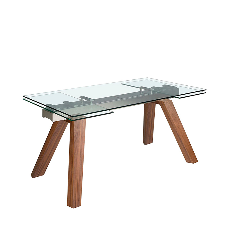 Запросить индивидуальное предложениеПрямоугольный раздвижной обеденный стол современного дизайна со столешницей из закаленного стекла. Деревянные ножки, покрытые шпоном натурального ореха, а также адаптируемость делают его полностью функциональным и универсальным предметом мебели для повседневного использования. Цвета отделки указываются в соответствии с каталогом производителя. Допускается незначительное отклонение в цвете, обусловленное техническими особенностями цветопередачи фотографий.